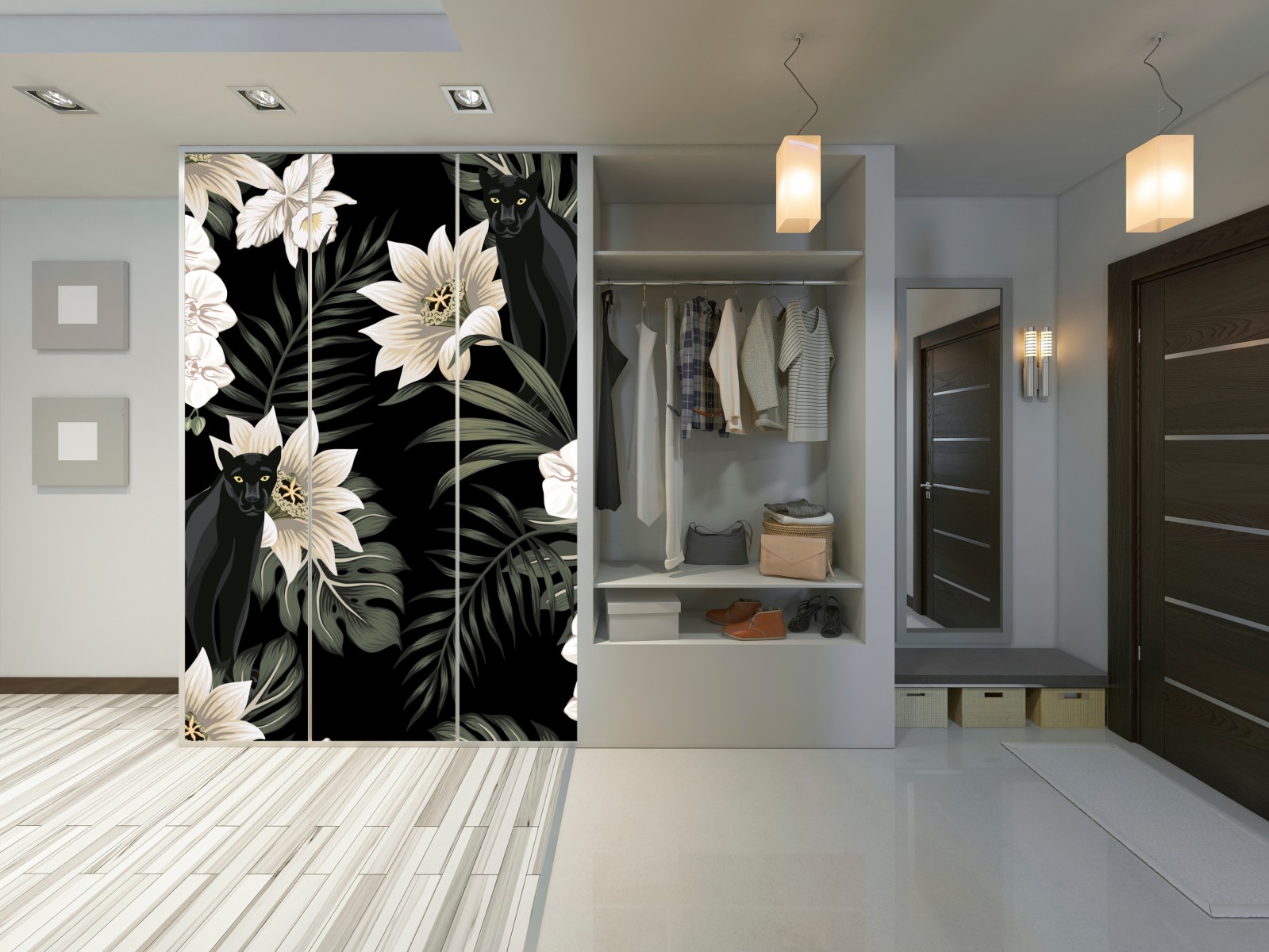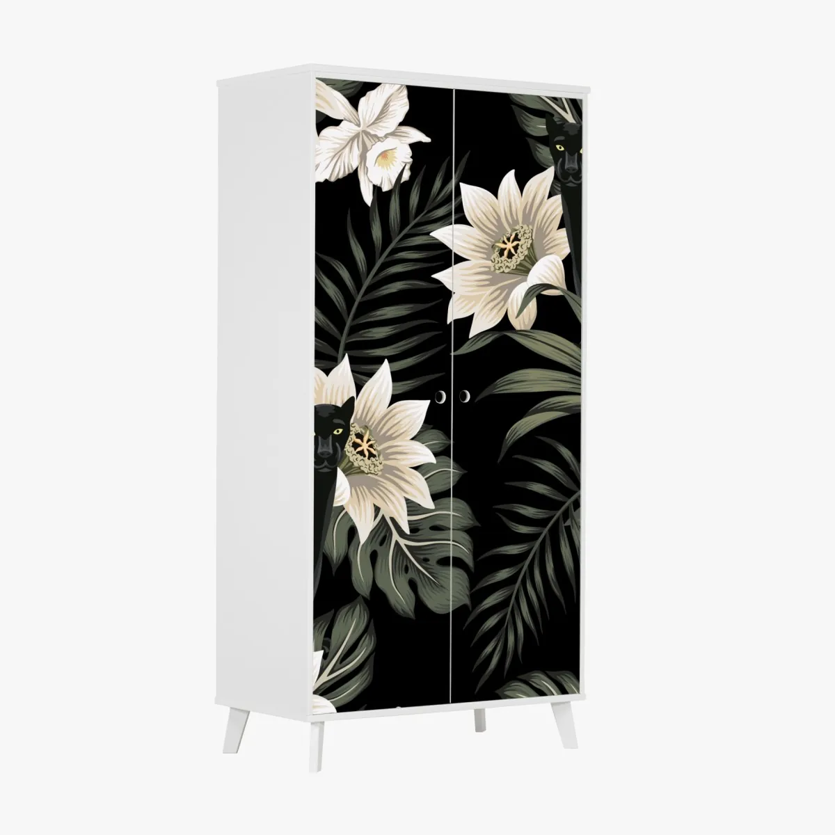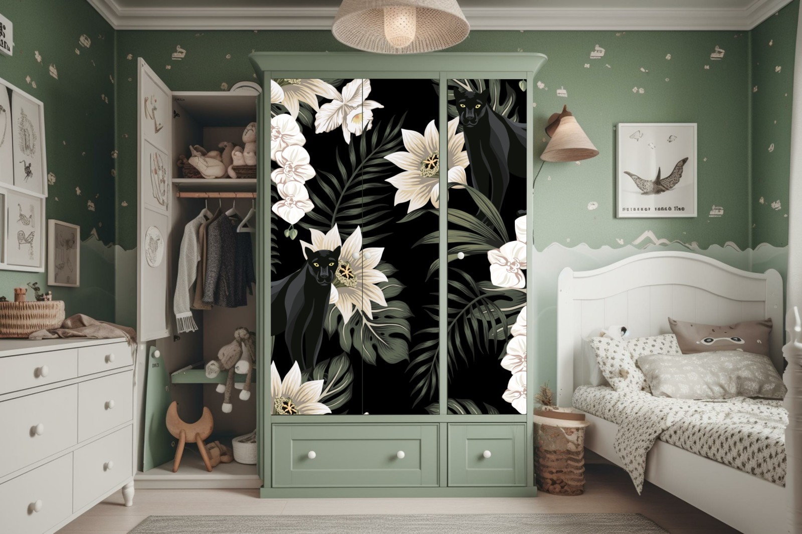Schrankaufkleber botanisches muster mit schwarzem panther