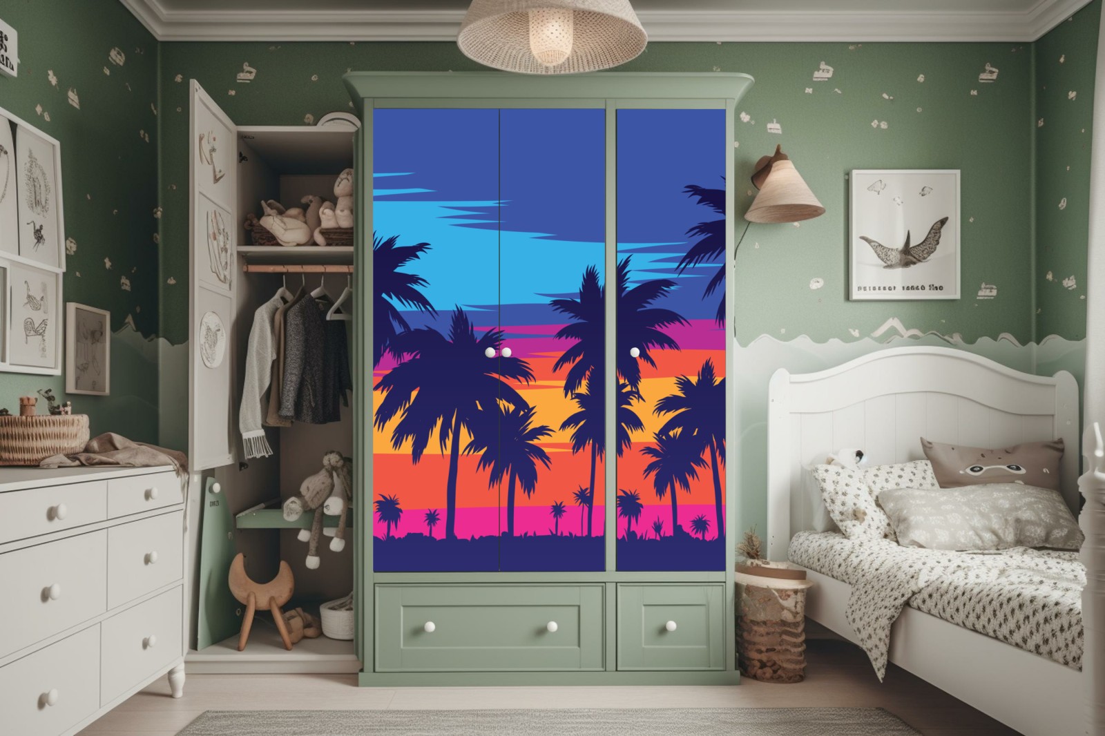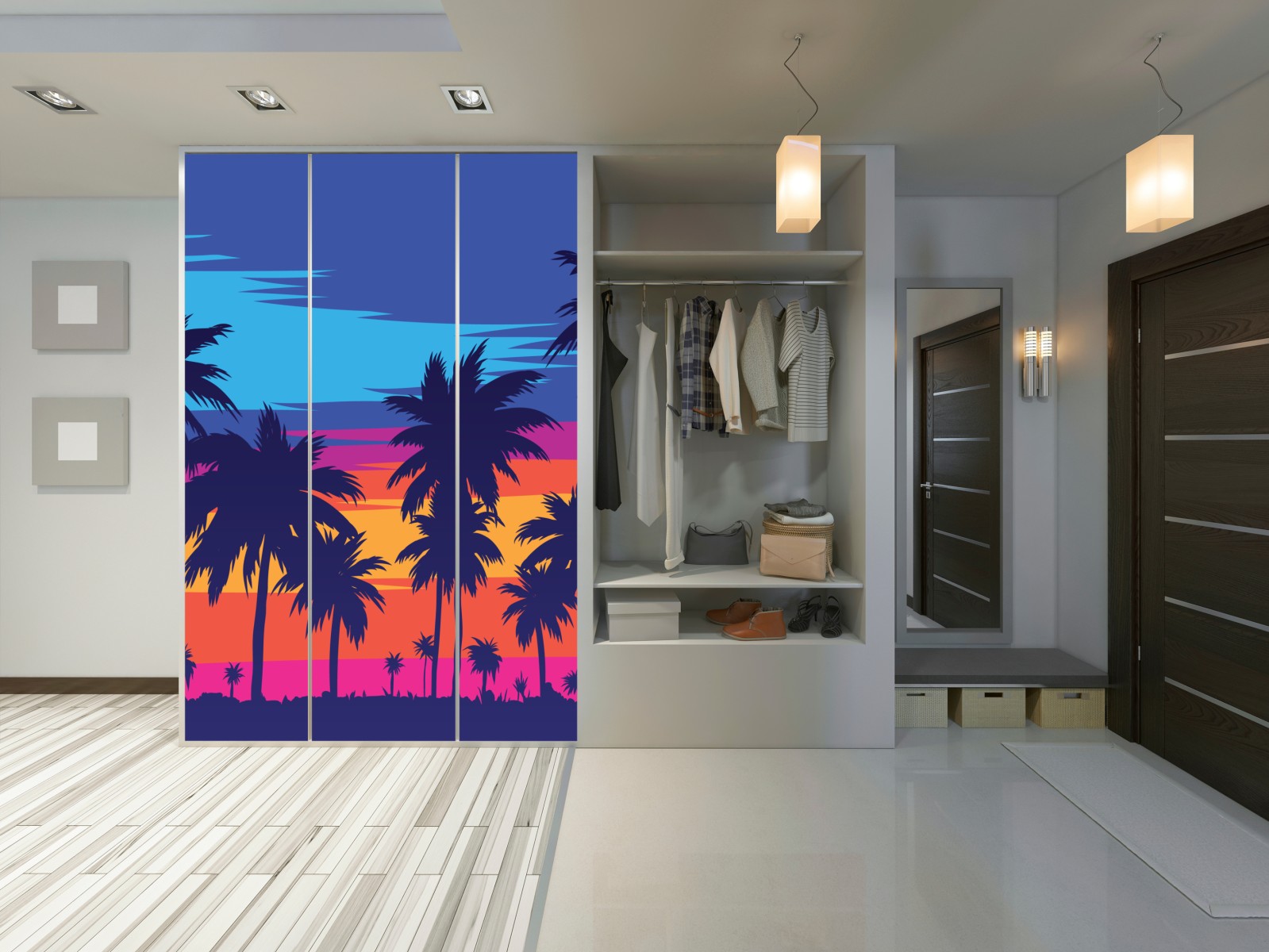 Schrankaufkleber bunter sonnenuntergang mit palmen