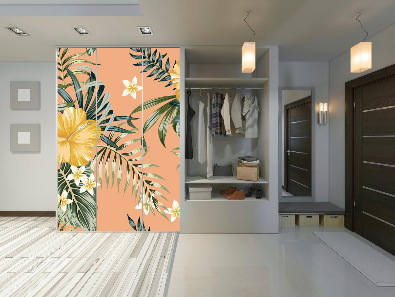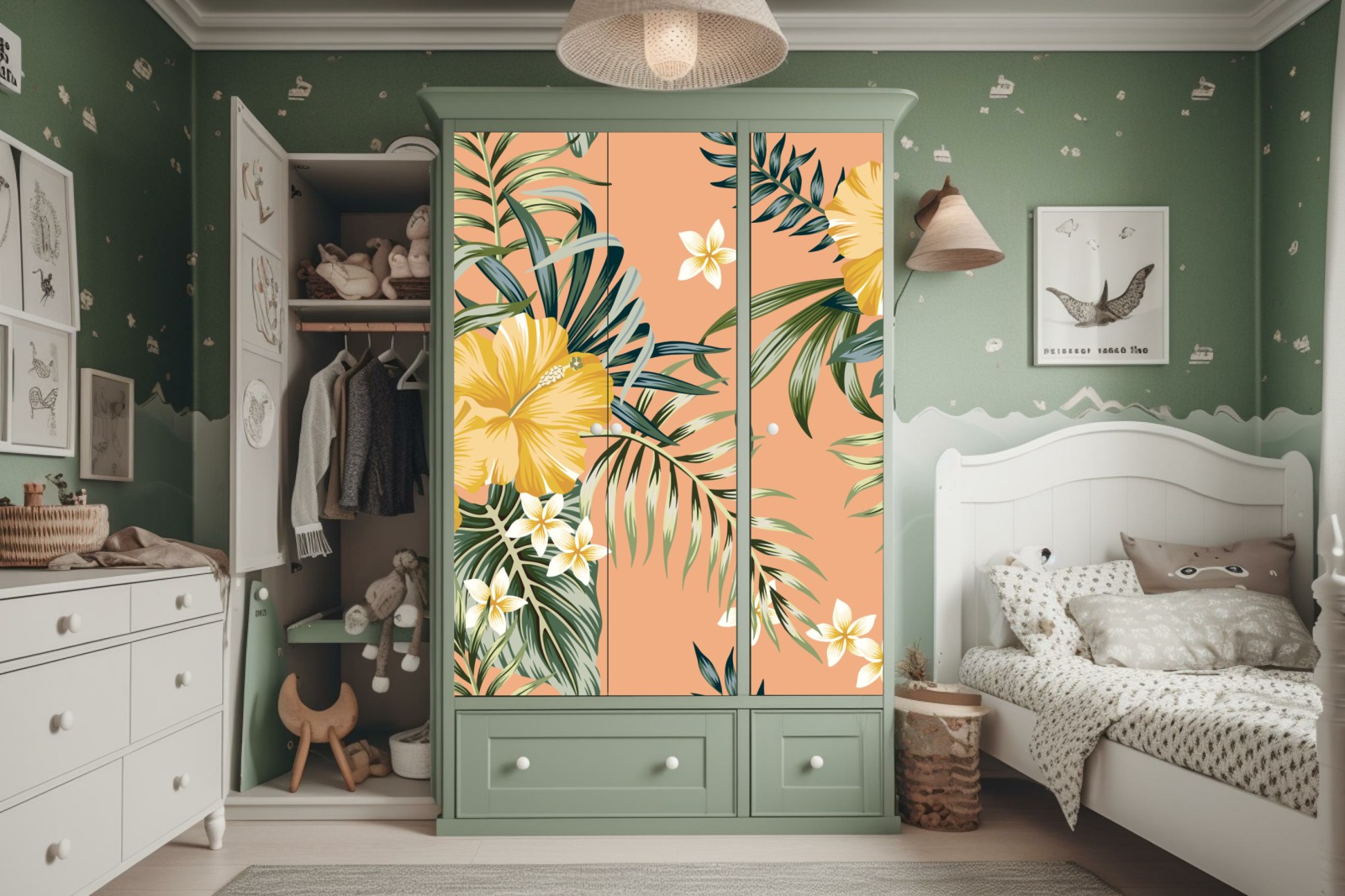 Schrankaufkleber tropisches hibiskusmuster auf pfirsichfarbenem hintergrund