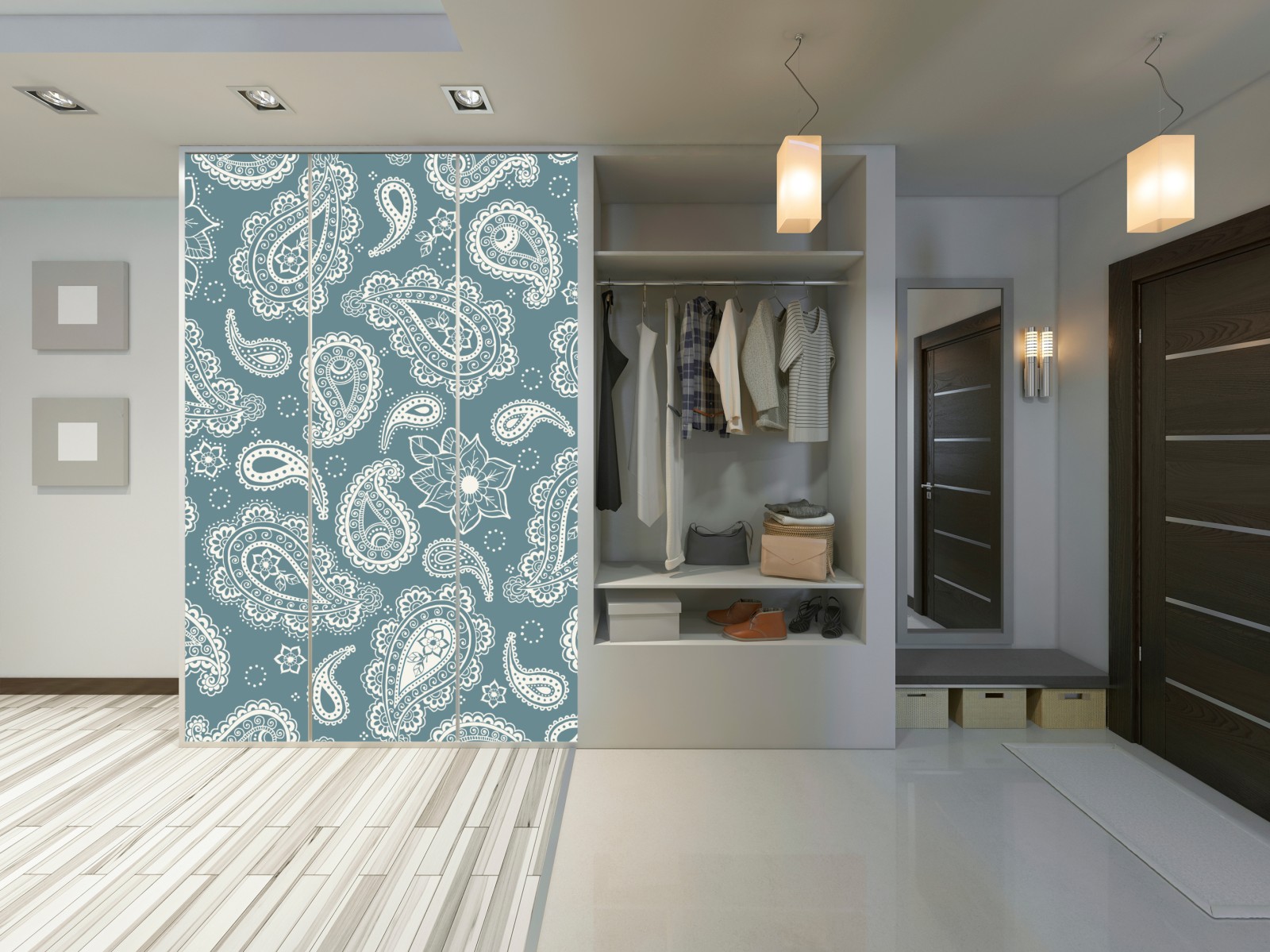 Schrankaufkleber türkis paisley muster mit blumendetails