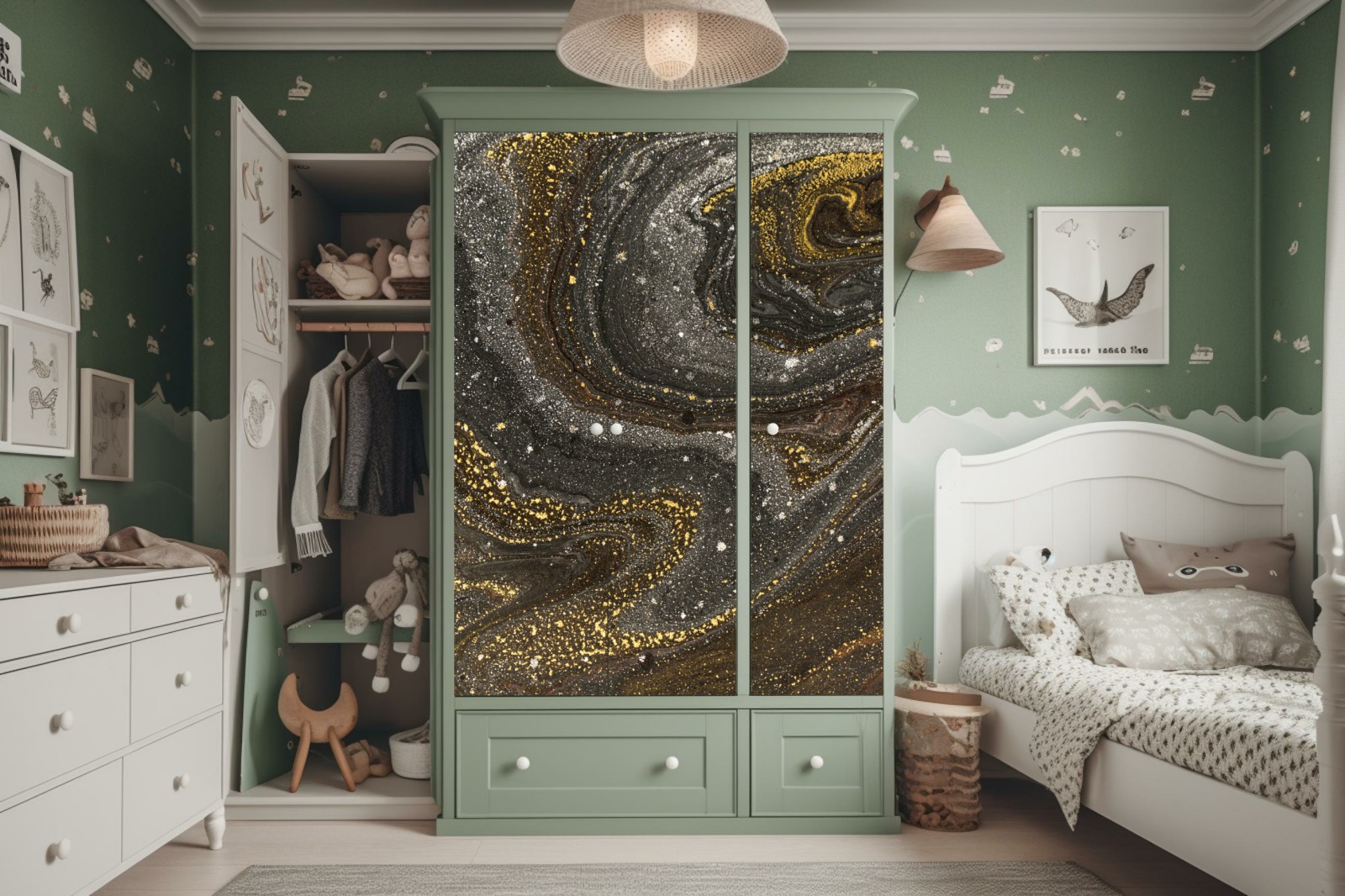 Schrankaufkleber gold-schwarzer marmorwirbel