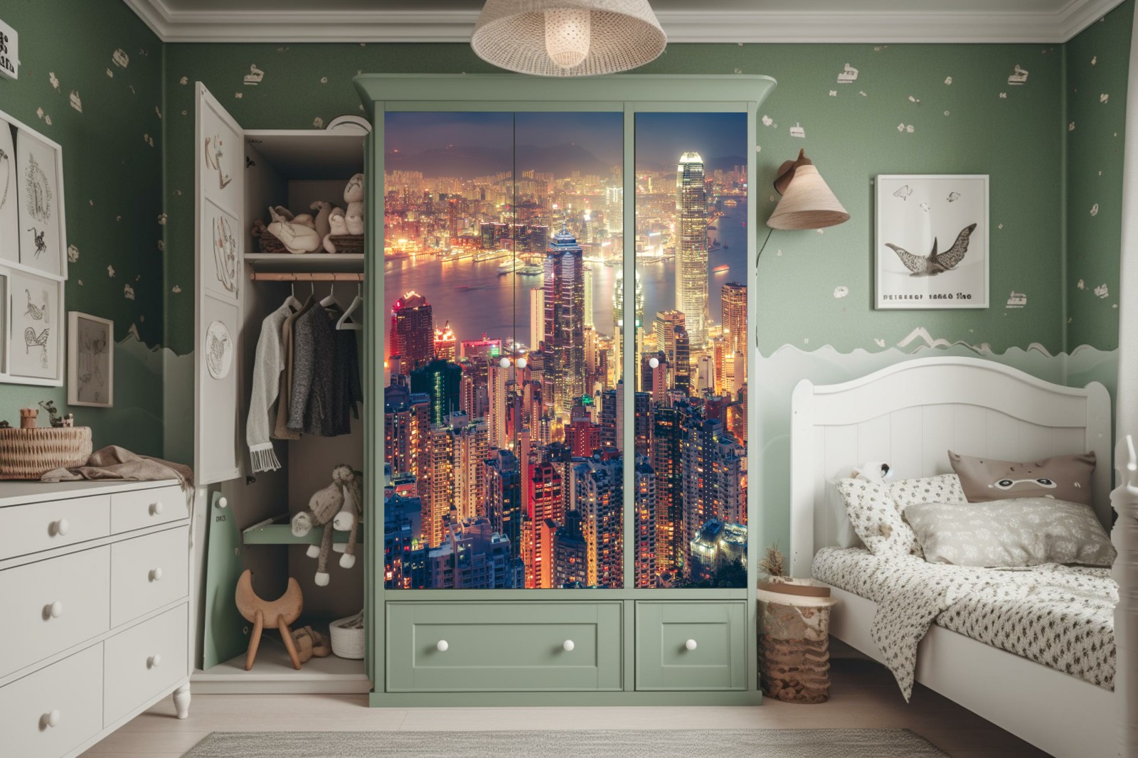 Schrankaufkleber Hongkong skyline bei nacht vom Victoria Peak