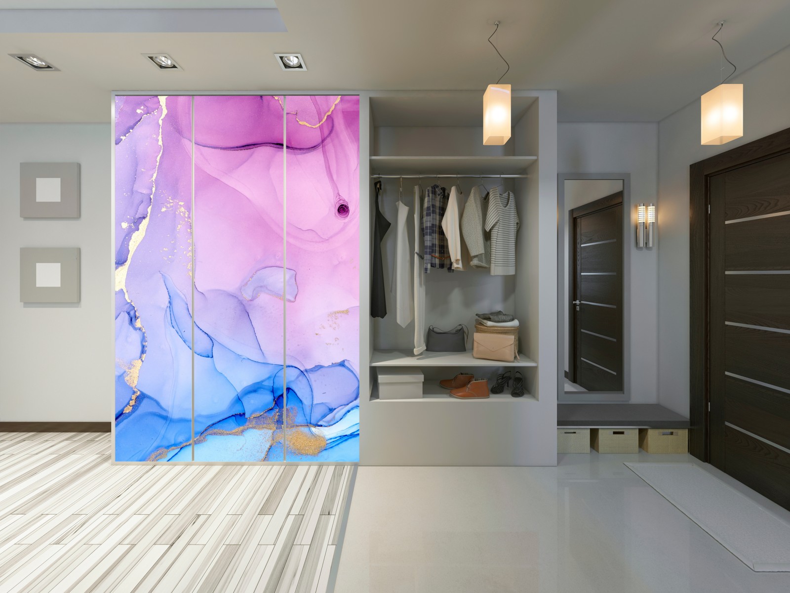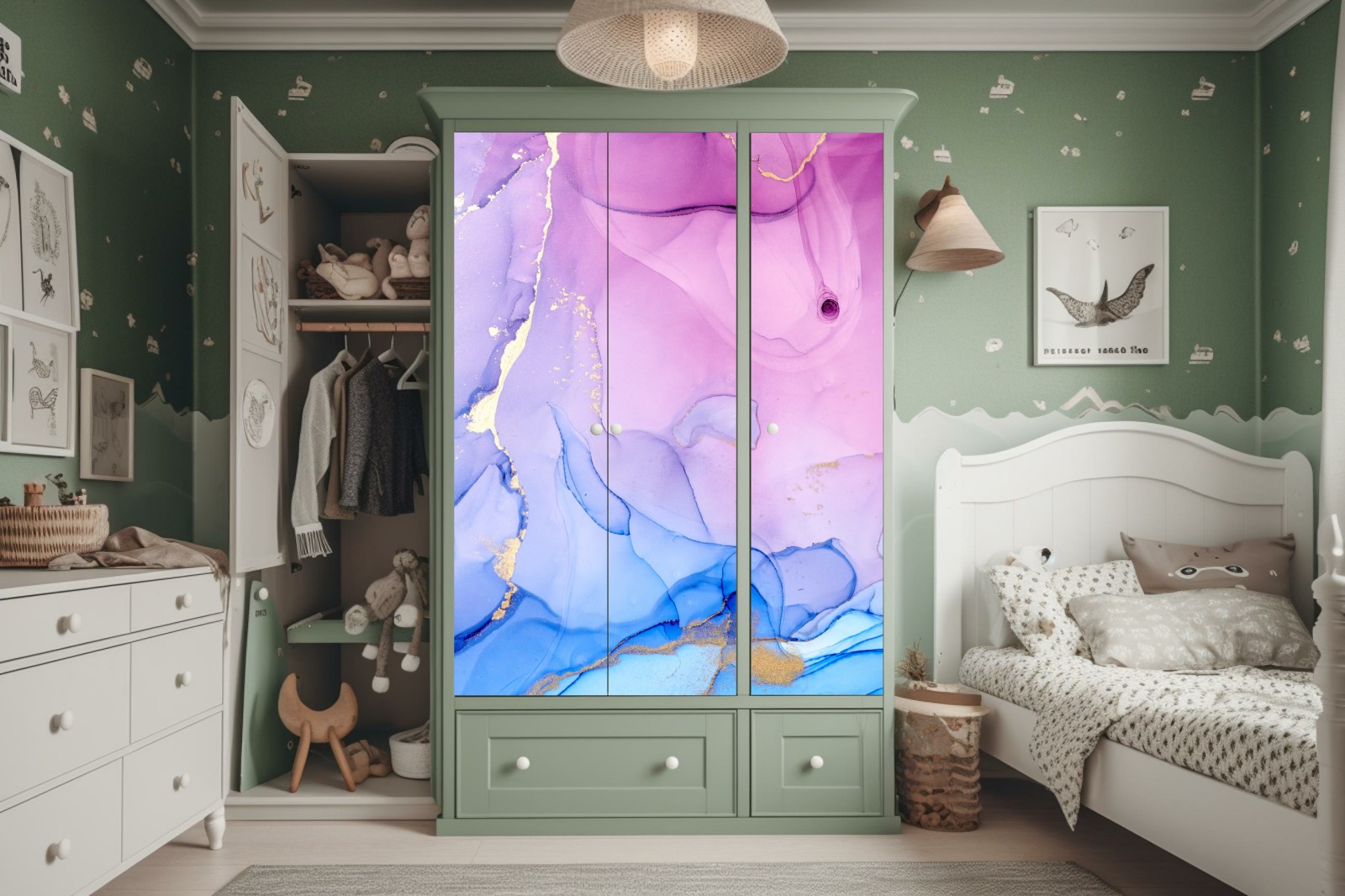 Schrankaufkleber rosa und blaue marmorierte abstraktion