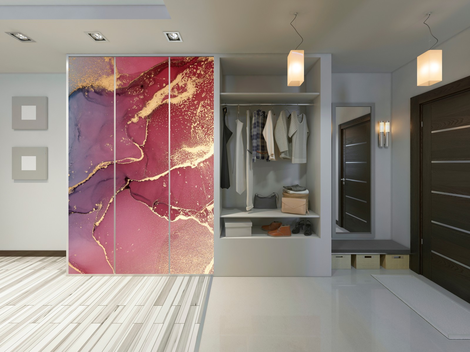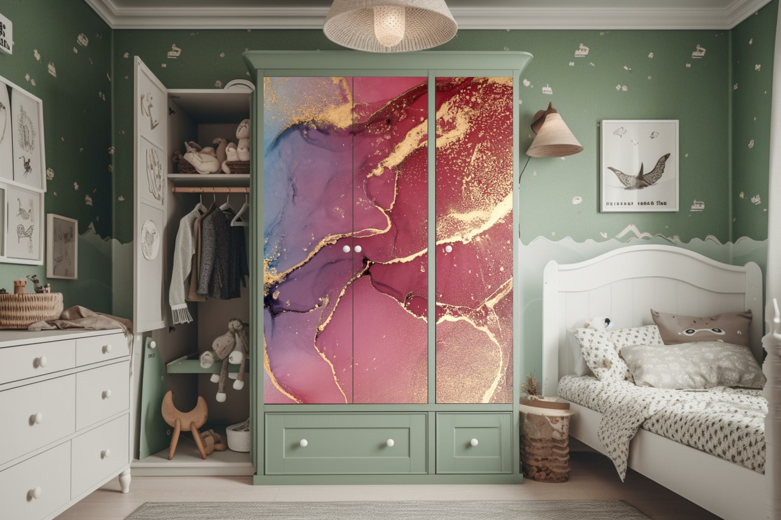 Schrankaufkleber abstraktes marmoriertes bild in türkis und lila mit gold