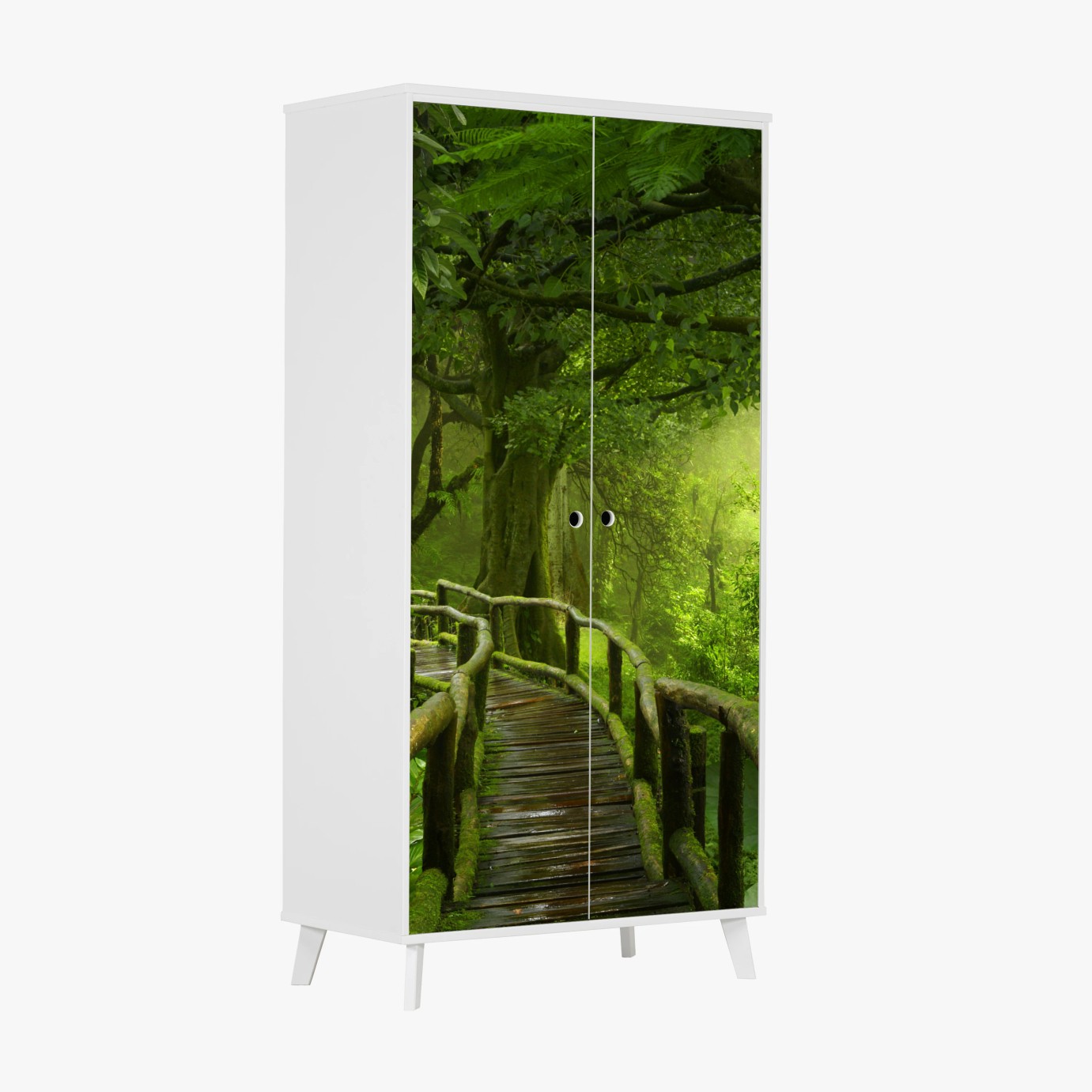 Schrankaufkleber Nebliger steg im tropischen dschungel