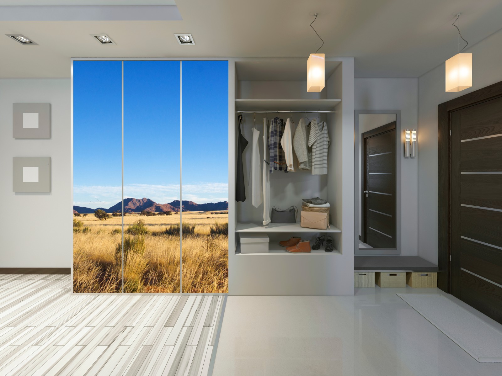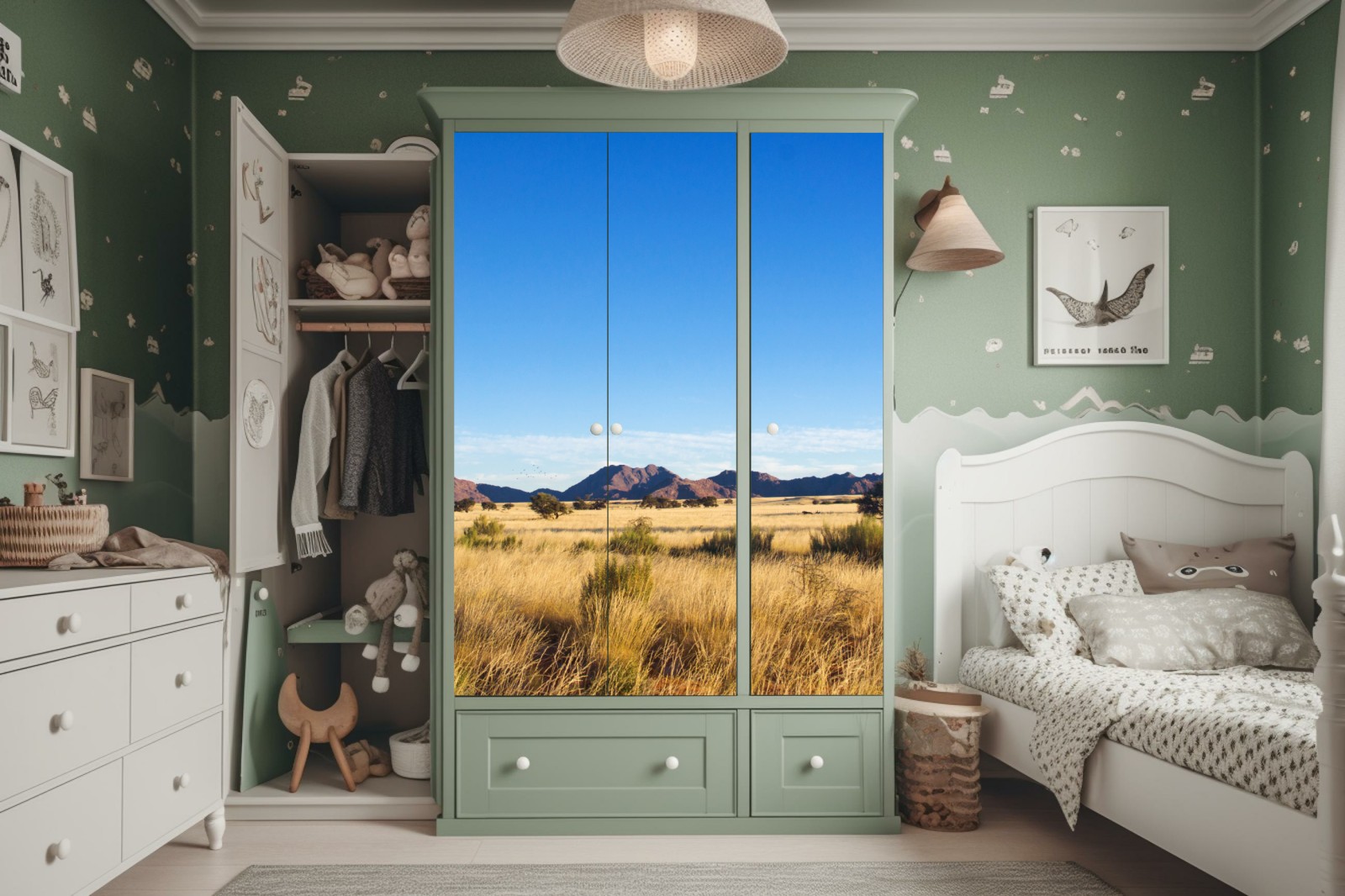 Schrankaufkleber ruhige savannenlandschaft unter klarem blauem himmel