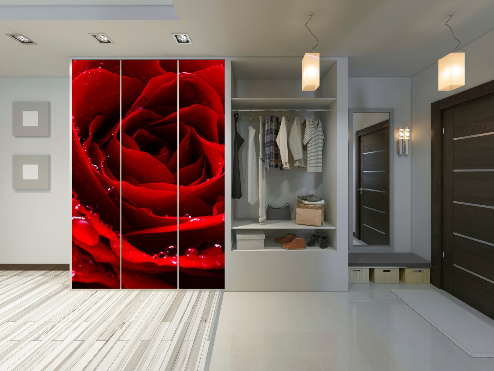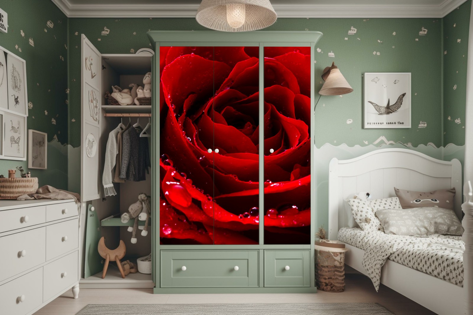 Schrankaufkleber leuchtend rote rose nahaufnahme