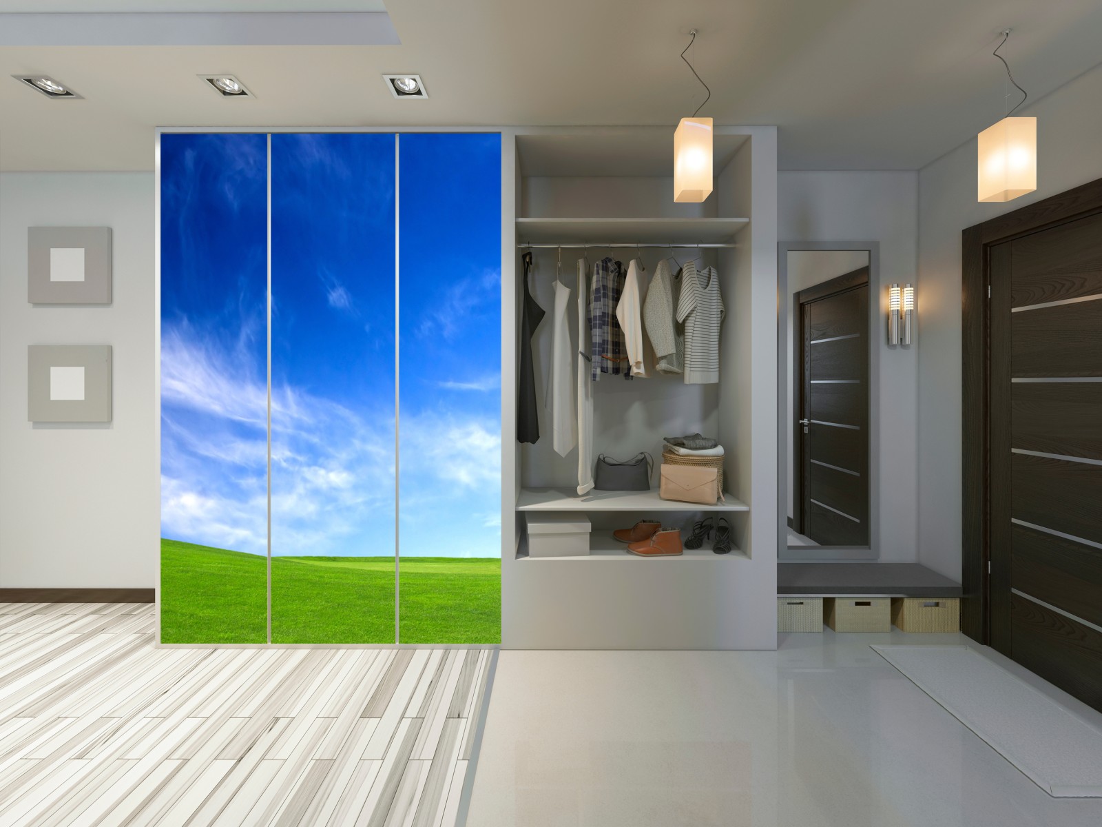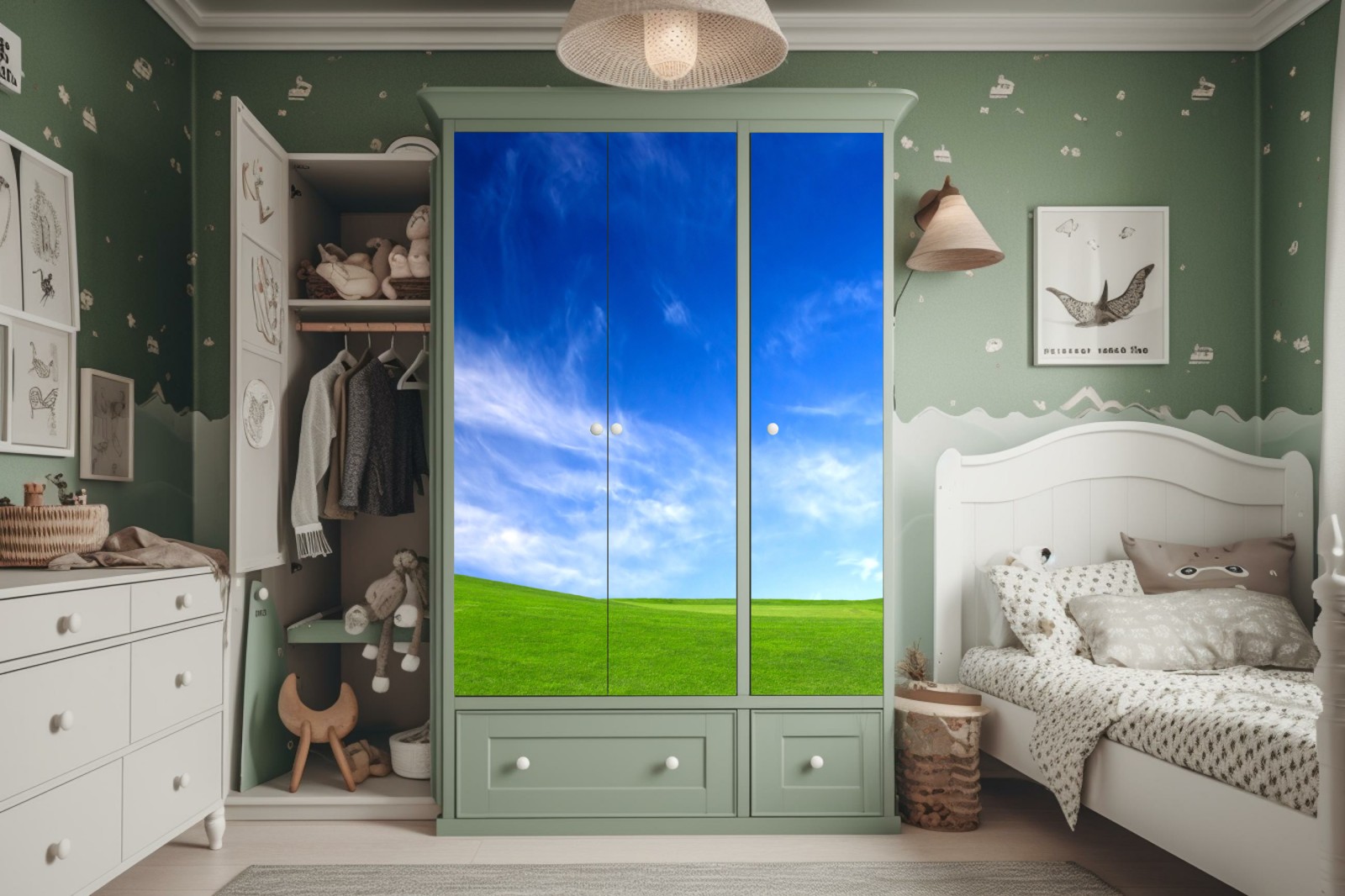 Schrankaufkleber sonnige grüne wiese unter blauem himmel