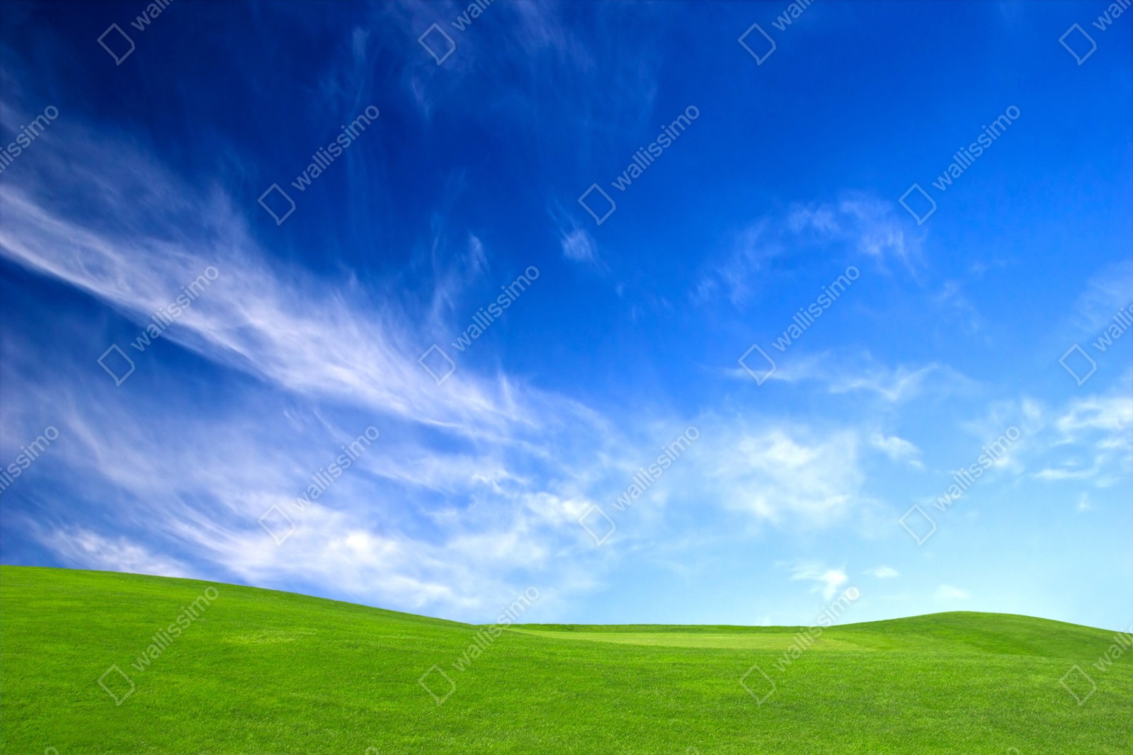 Leuchtend grüne Wiese und klarer blauer Himmel schaffen Ruhe und Weite für jeden Raum.