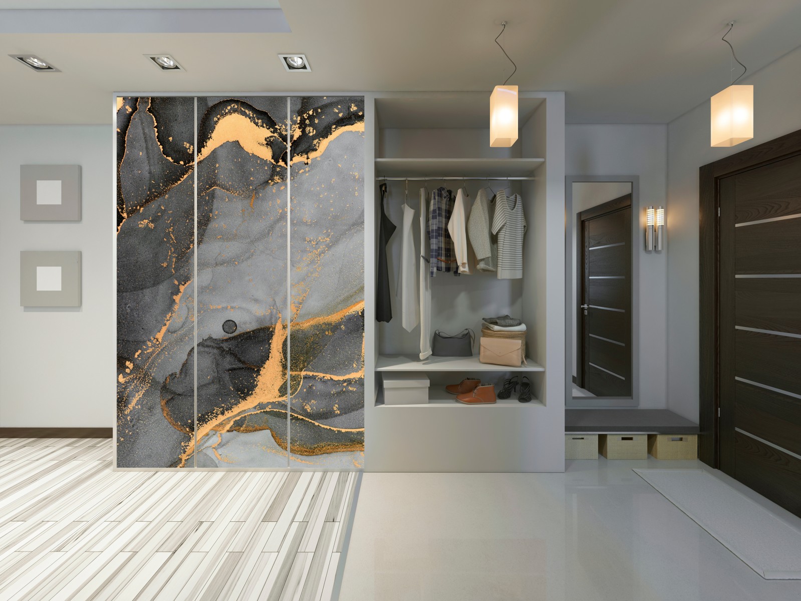 Schrankaufkleber rauchiger grauer marmor mit goldenen adern