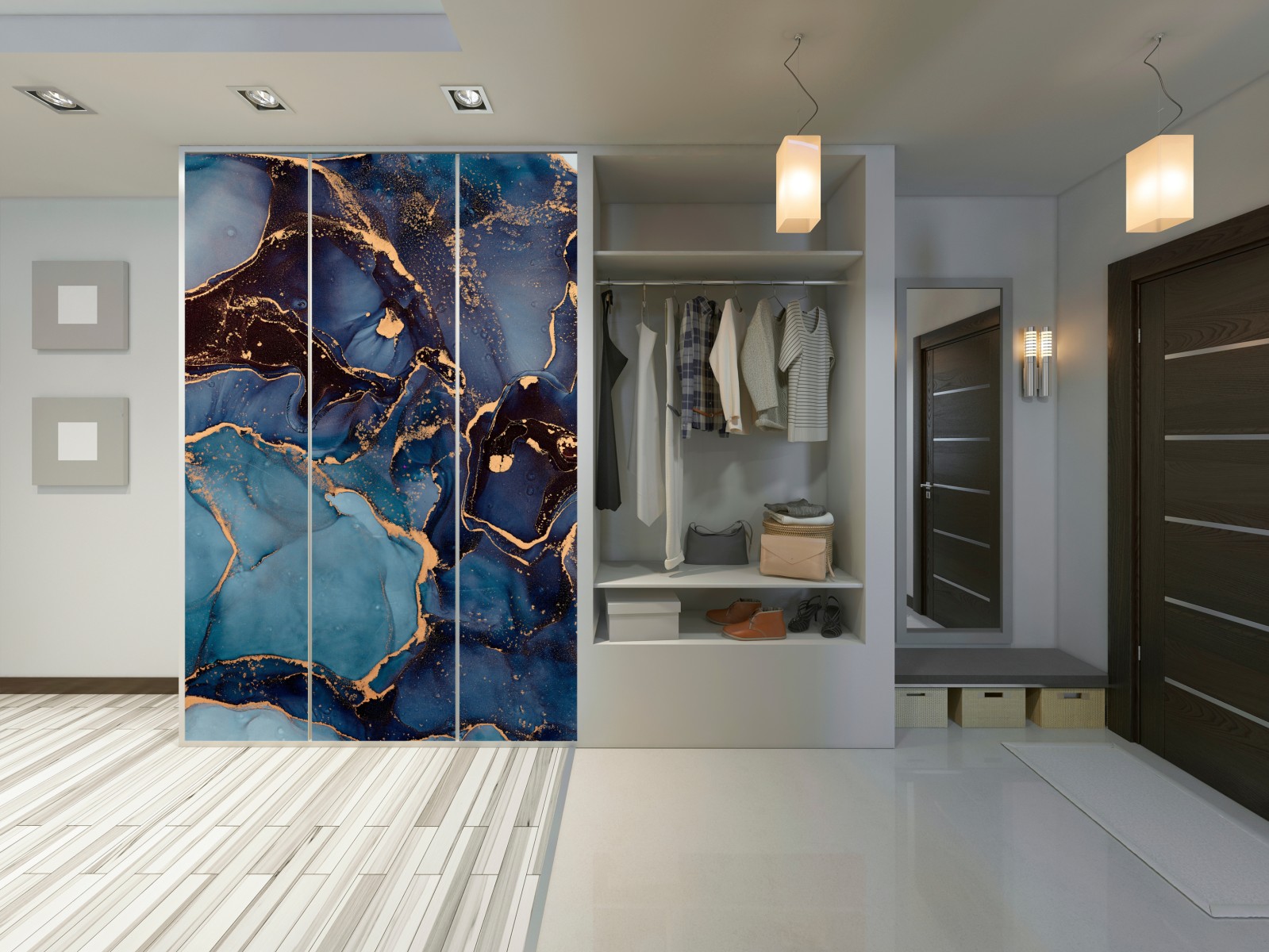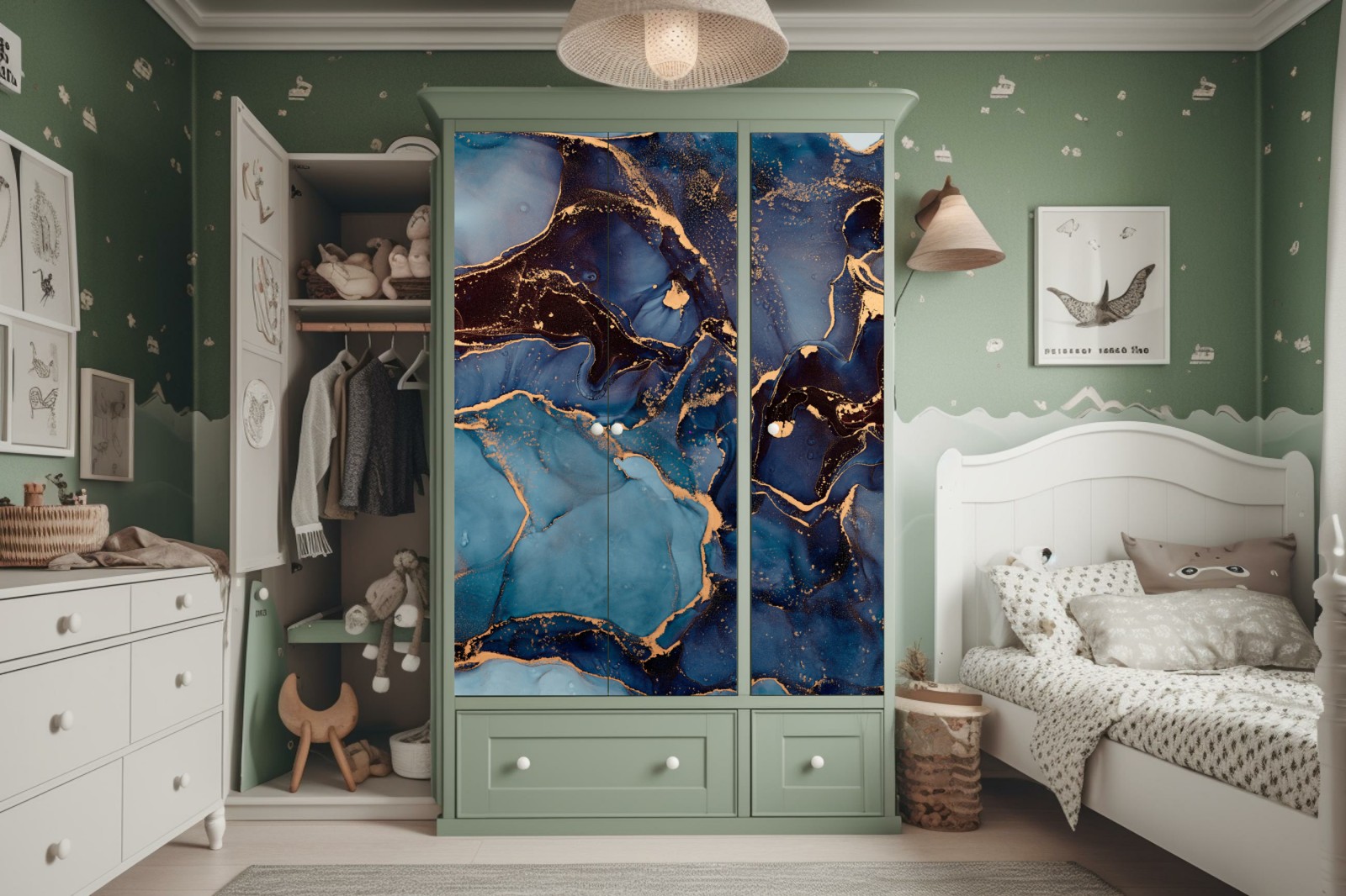 Schrankaufkleber tiefes ozeanblau mit goldadern