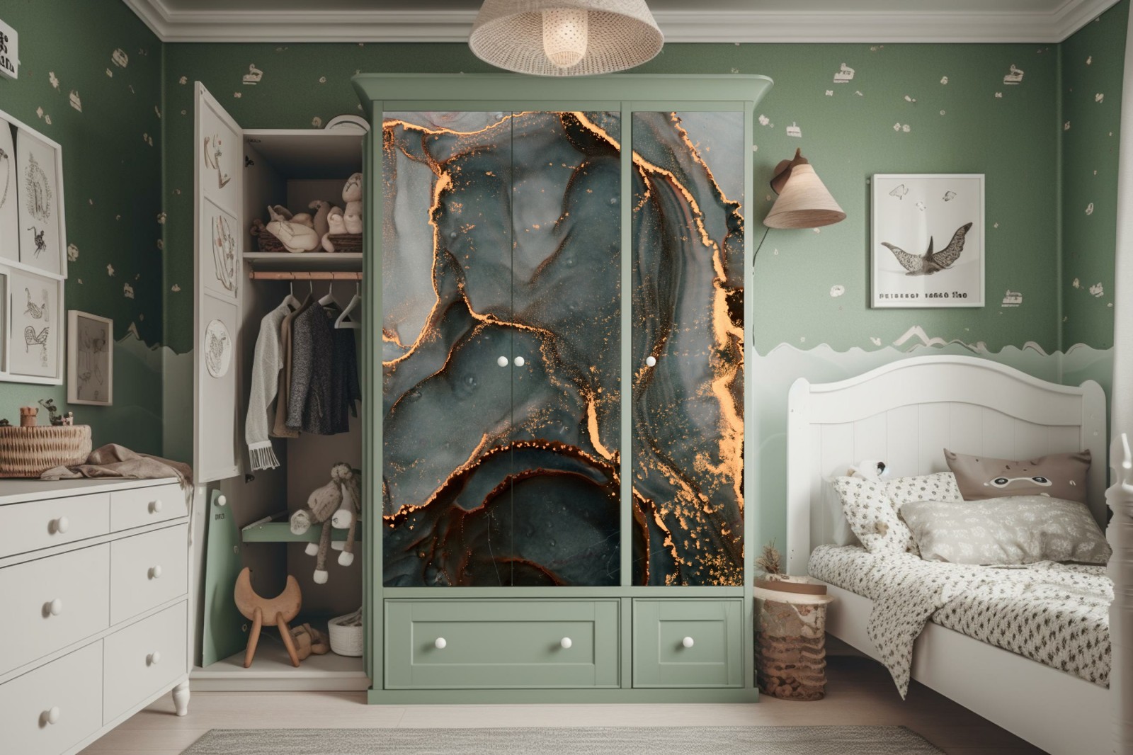 Schrankaufkleber luxuriöse türkis abstraktion mit goldenen adern