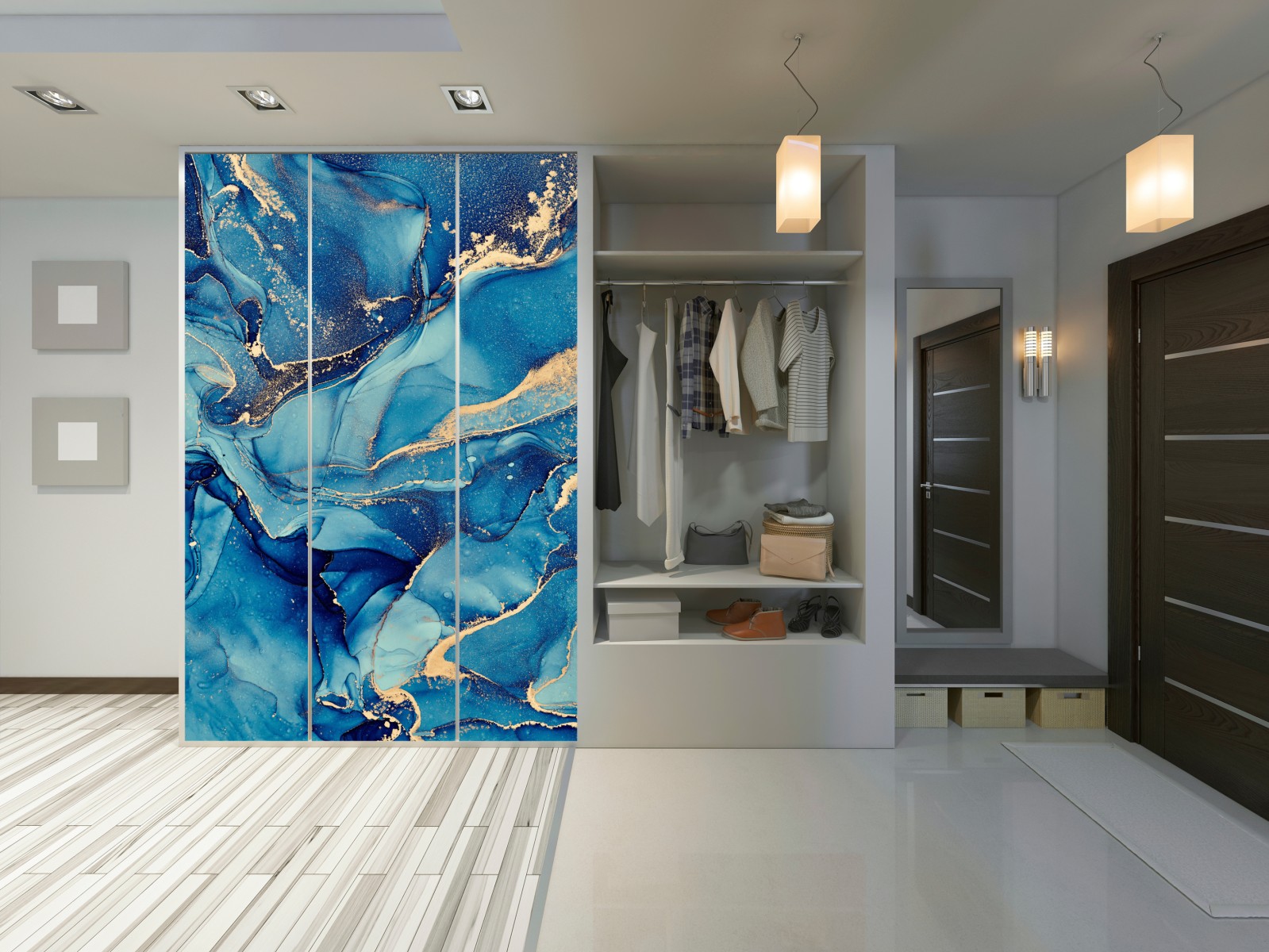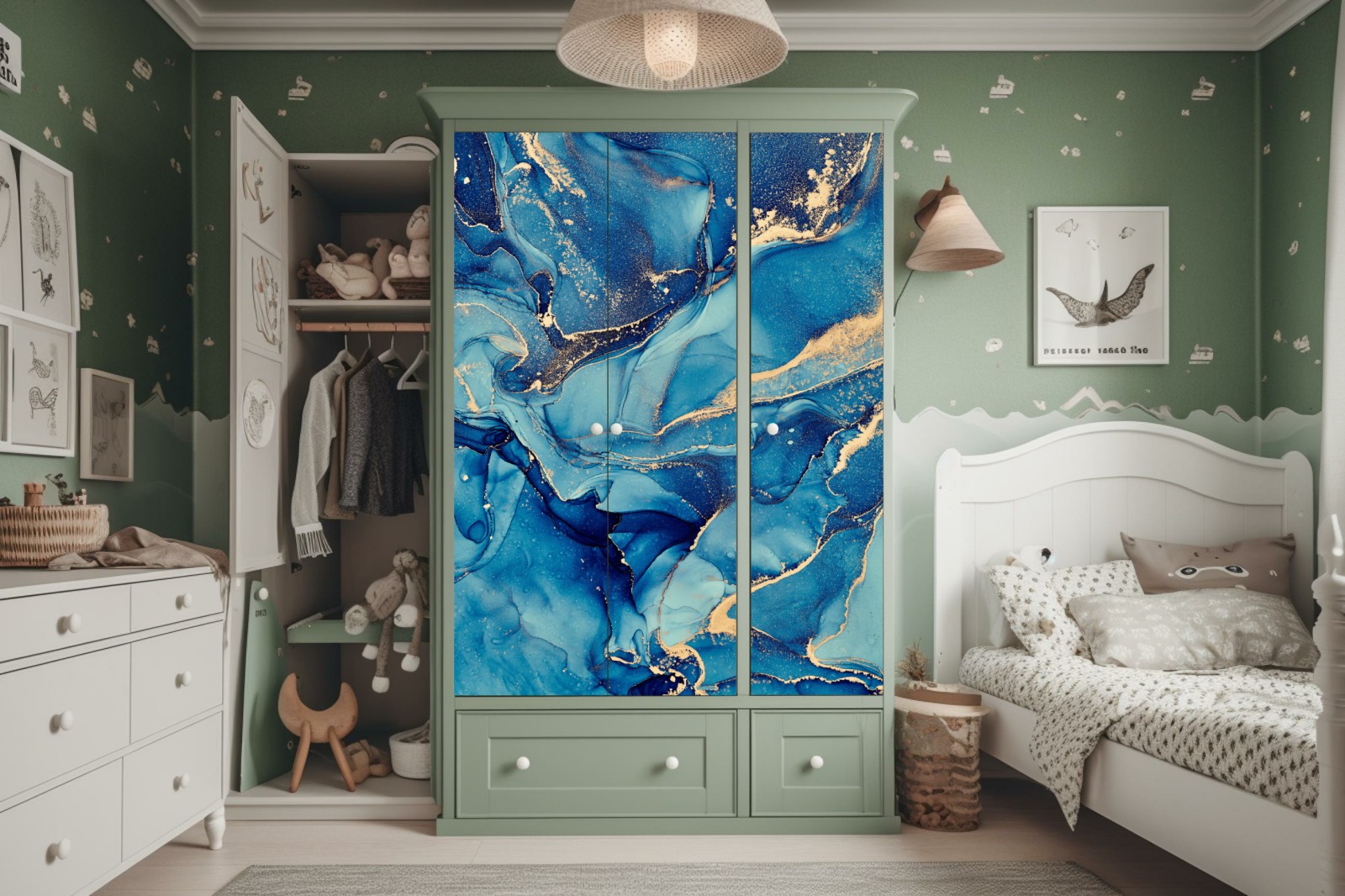 Schrankaufkleber ozeanblau und goldene wirbel flüssige abstraktion