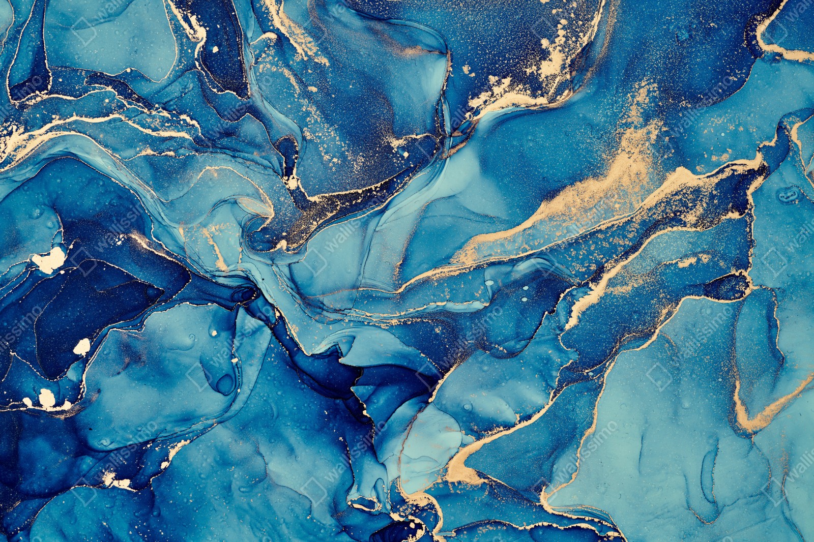 Elegante abstrakte flüssige Kunst in Blau- und Goldtönen verleiht jedem Raum eine luxuriöse, beruhigende Atmosphäre.