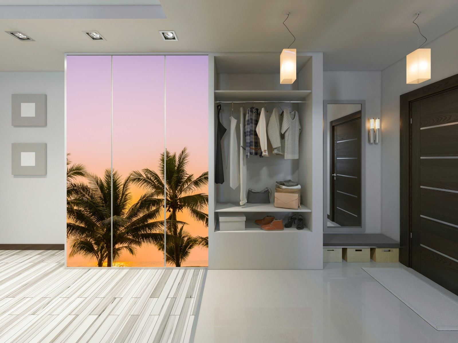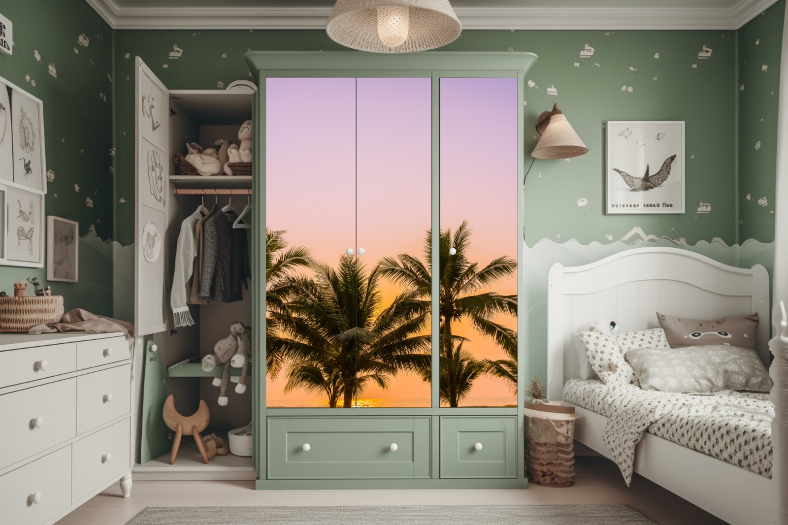 Schrankaufkleber tropischer palmsonnenuntergang am strand