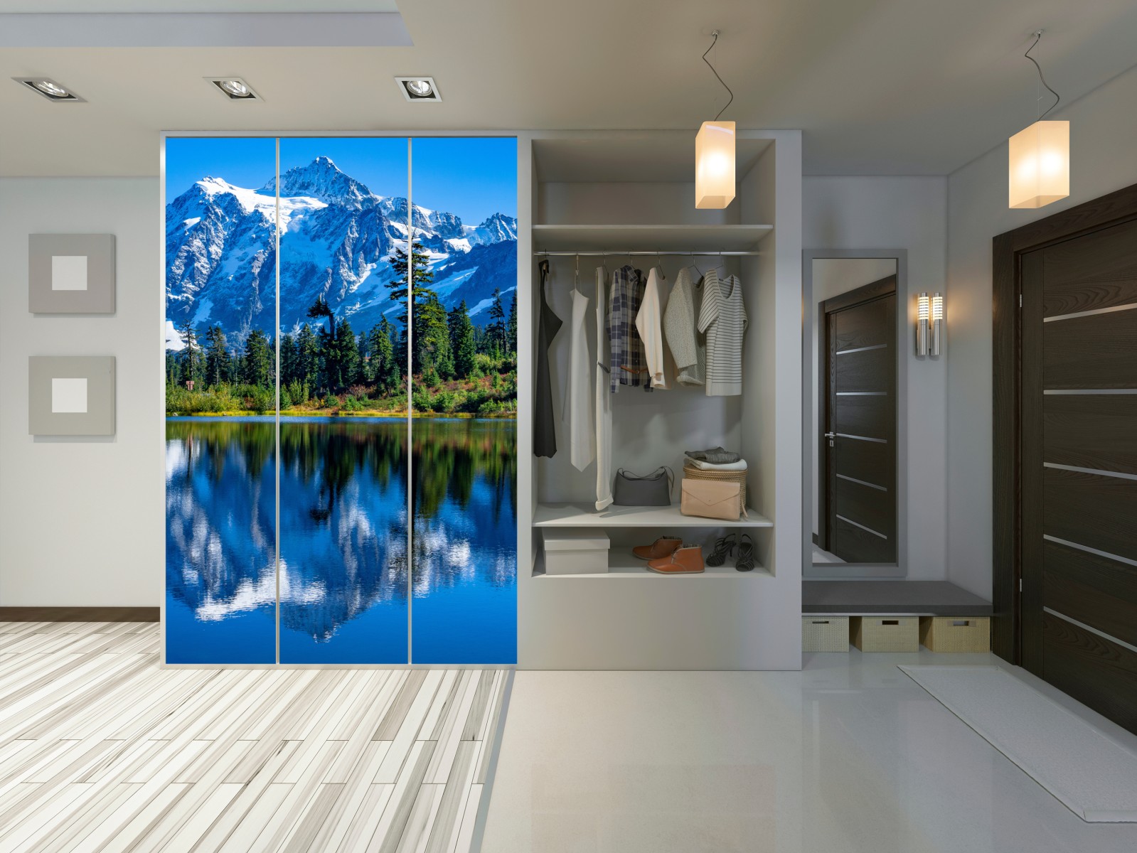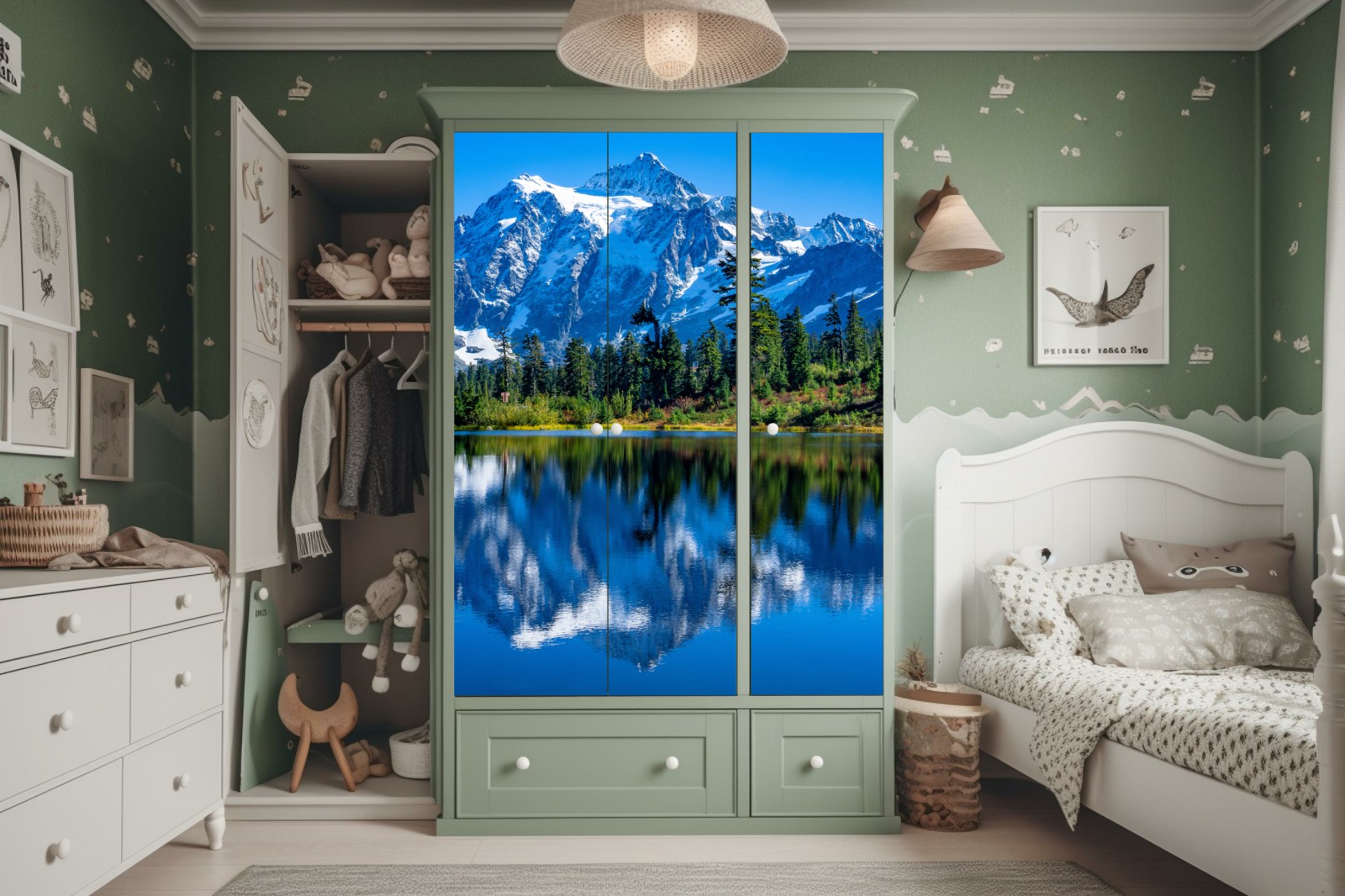 Schrankaufkleber majestätische bergspiegelung über dem see