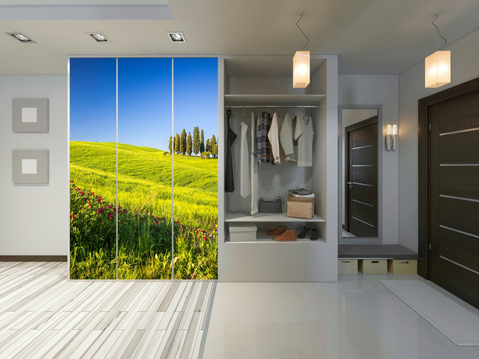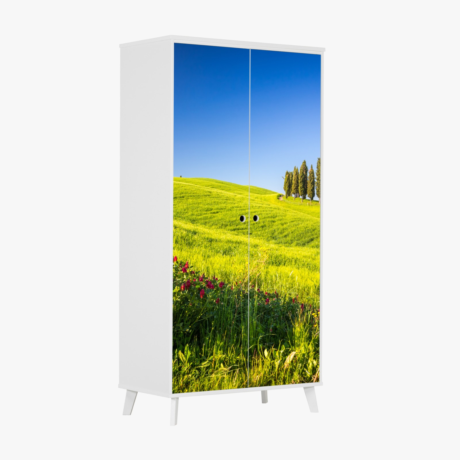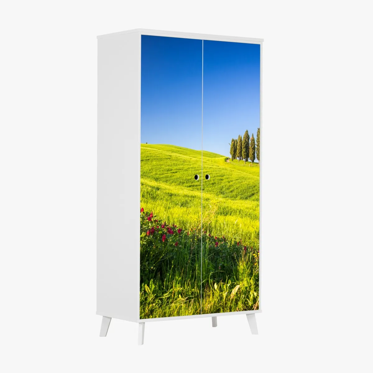 Schrankaufkleber sonnige grüne hügel mit zypressen