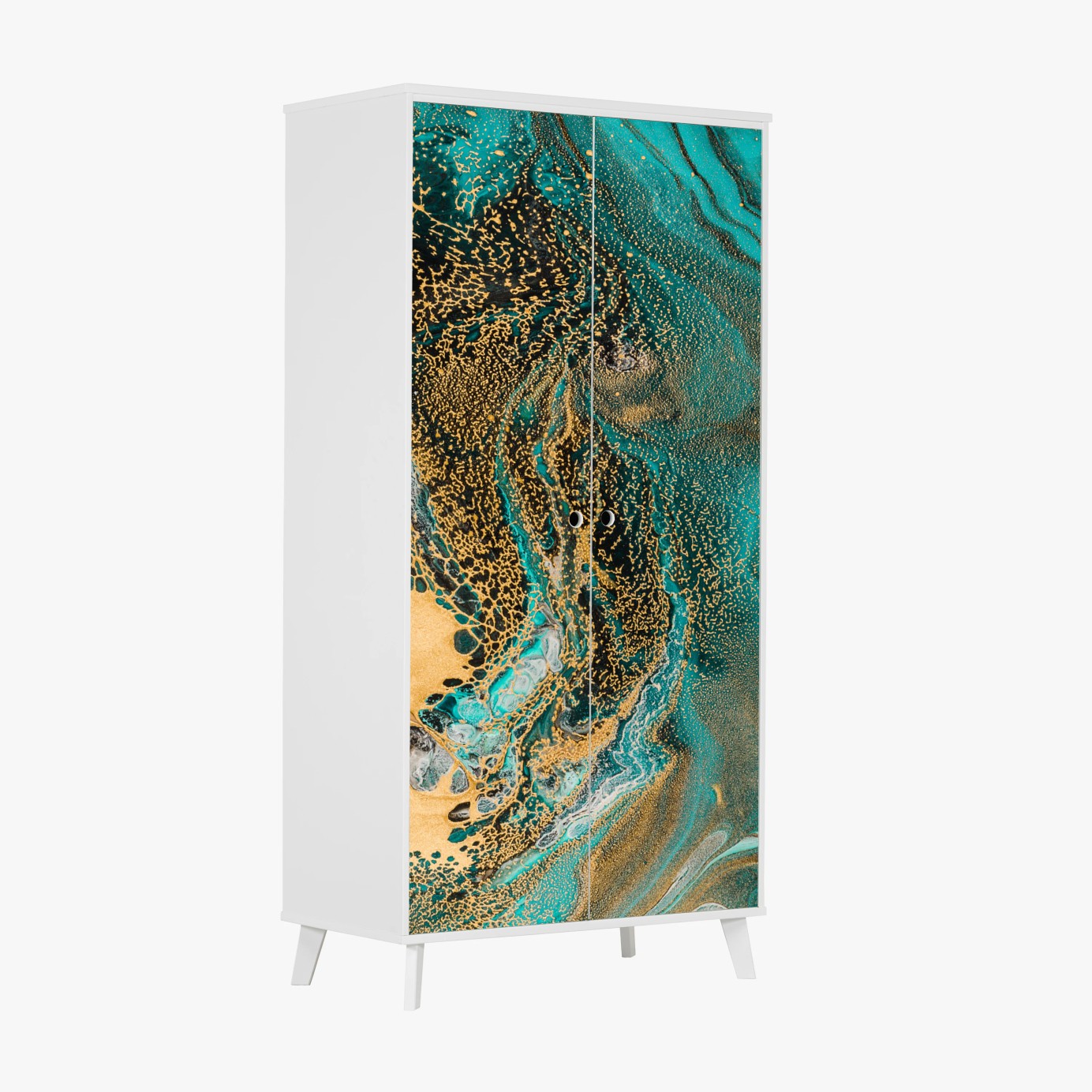 Schrankaufkleber Türkis und gold fließende abstraktion