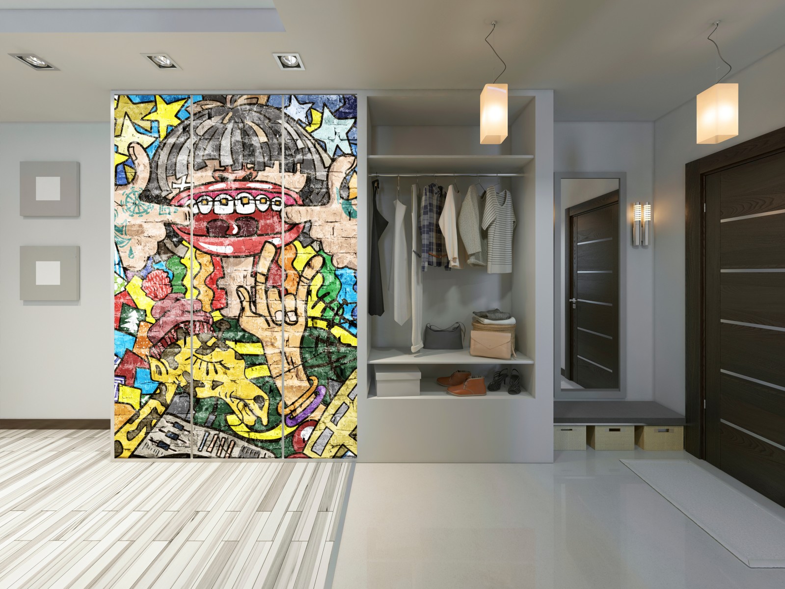 Schrankaufkleber buntes graffiti-mural mit verspielter figur