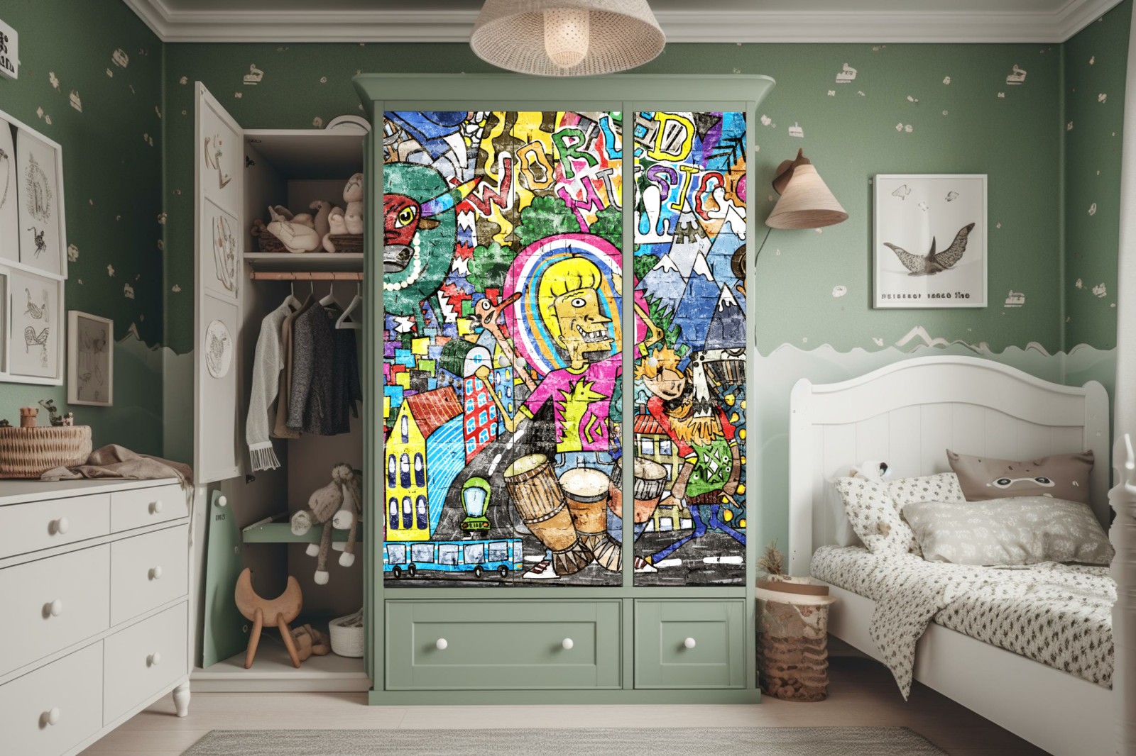 Schrankaufkleber farbenfrohes graffiti-wandbild
