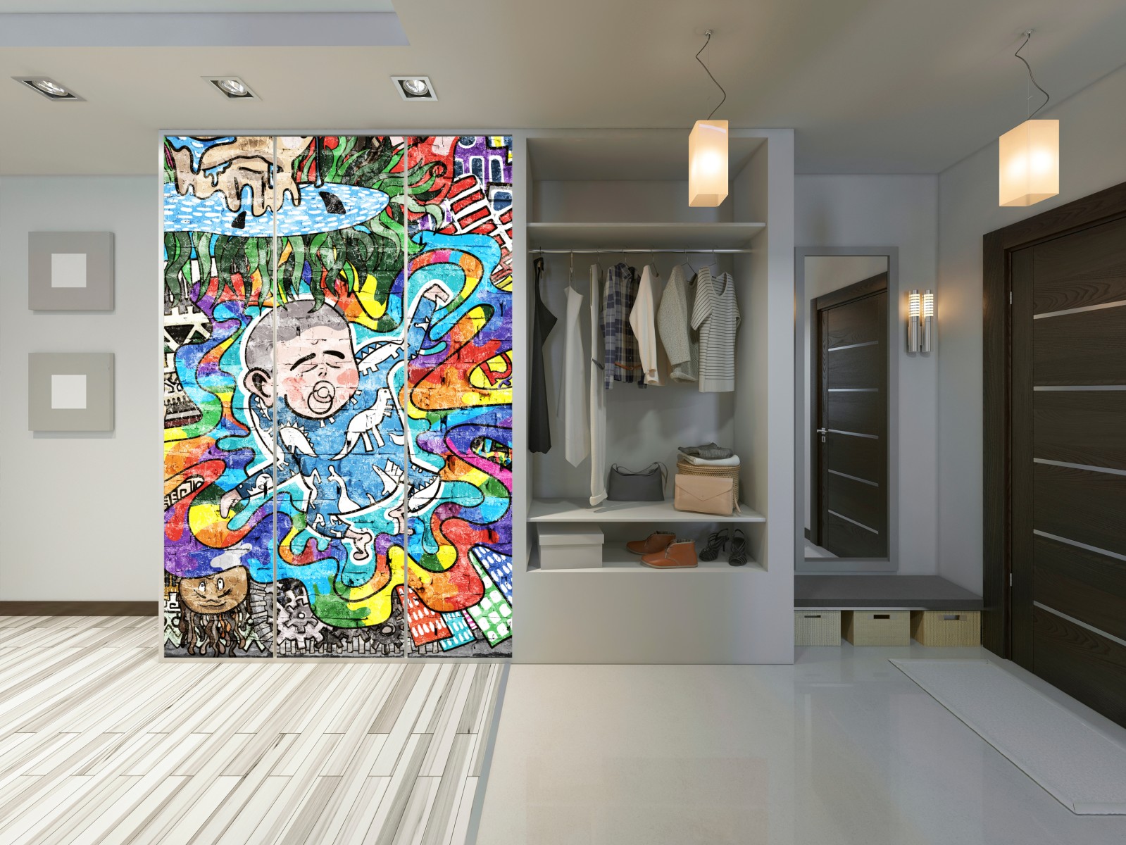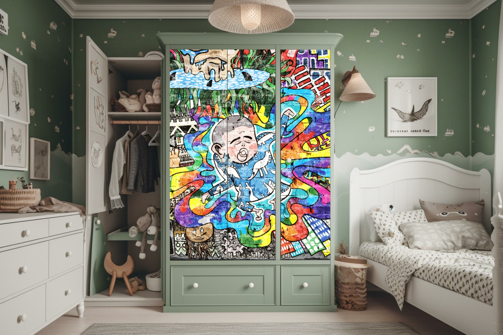 Schrankaufkleber buntes graffiti-mural mit träumendem kind