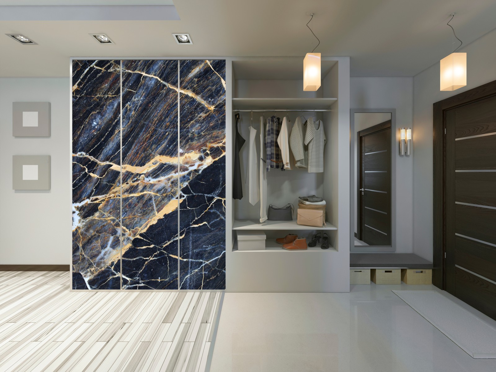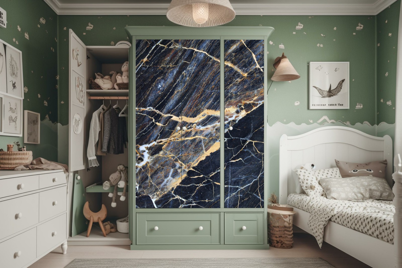 Schrankaufkleber dunkler marmor mit goldenen und cremefarbenen adern