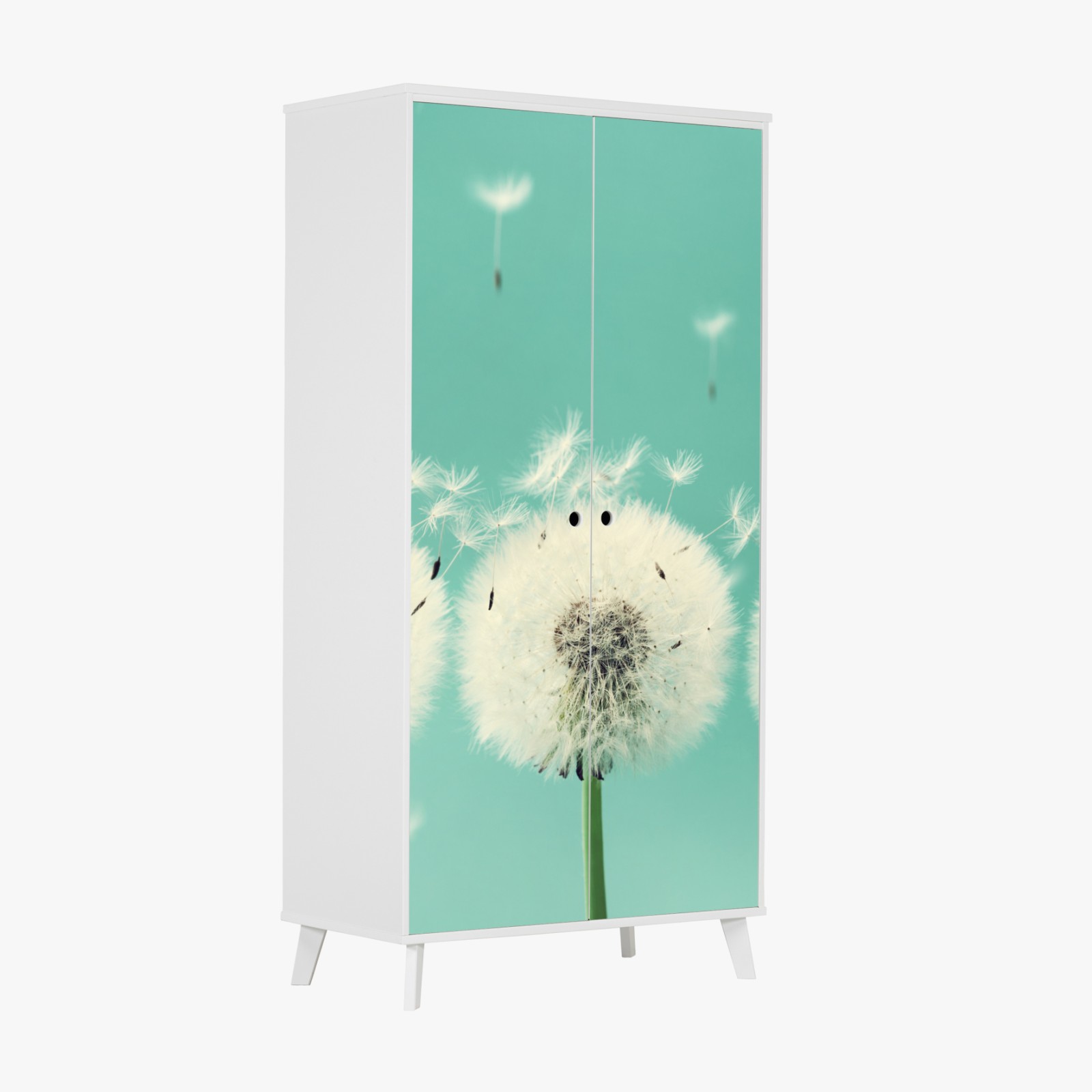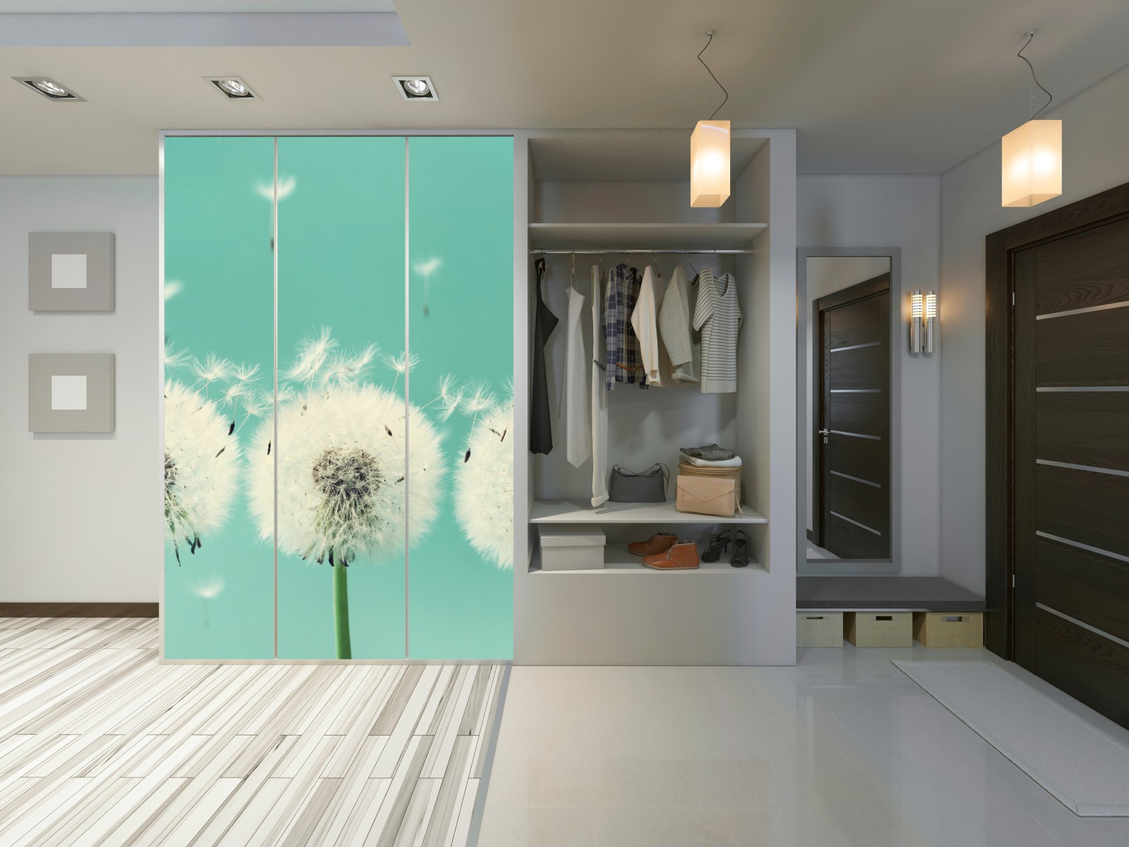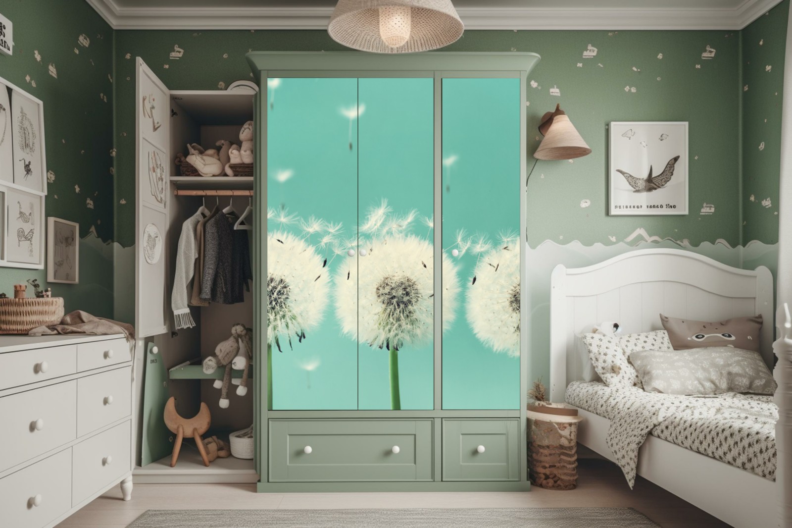 Schrankaufkleber drei löwenzahn-pusteblumen auf türkisgrund