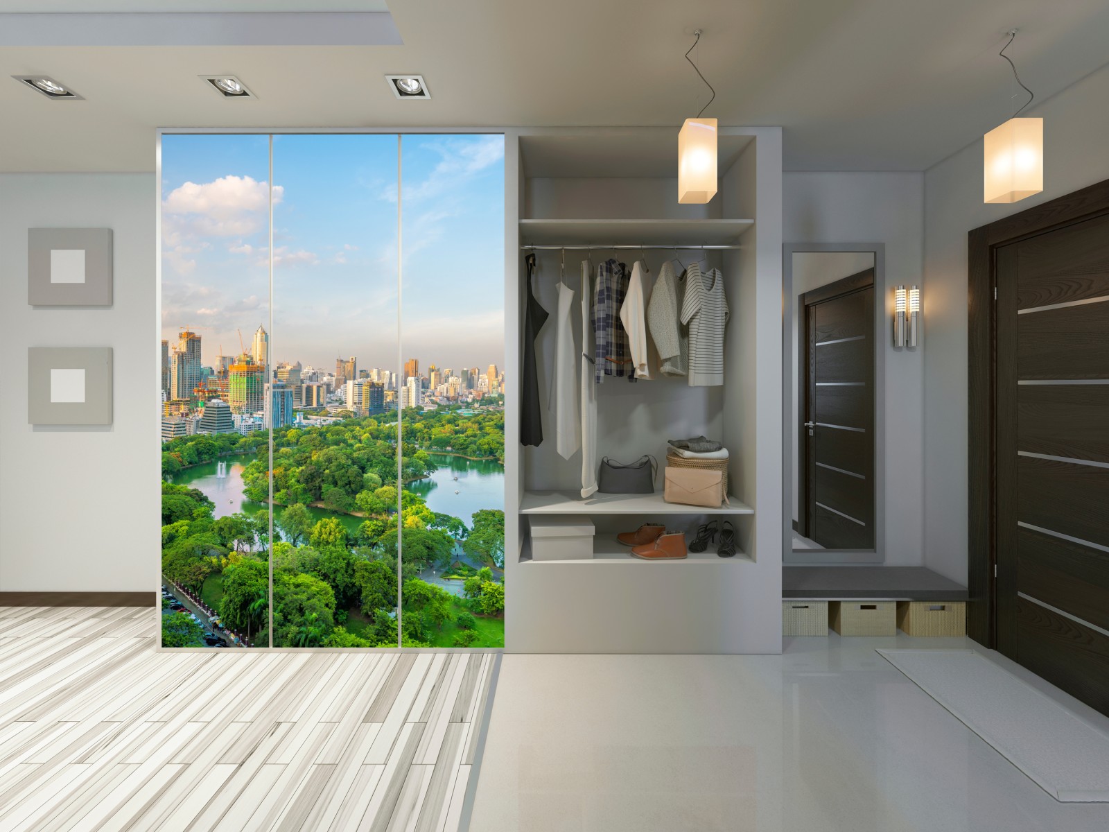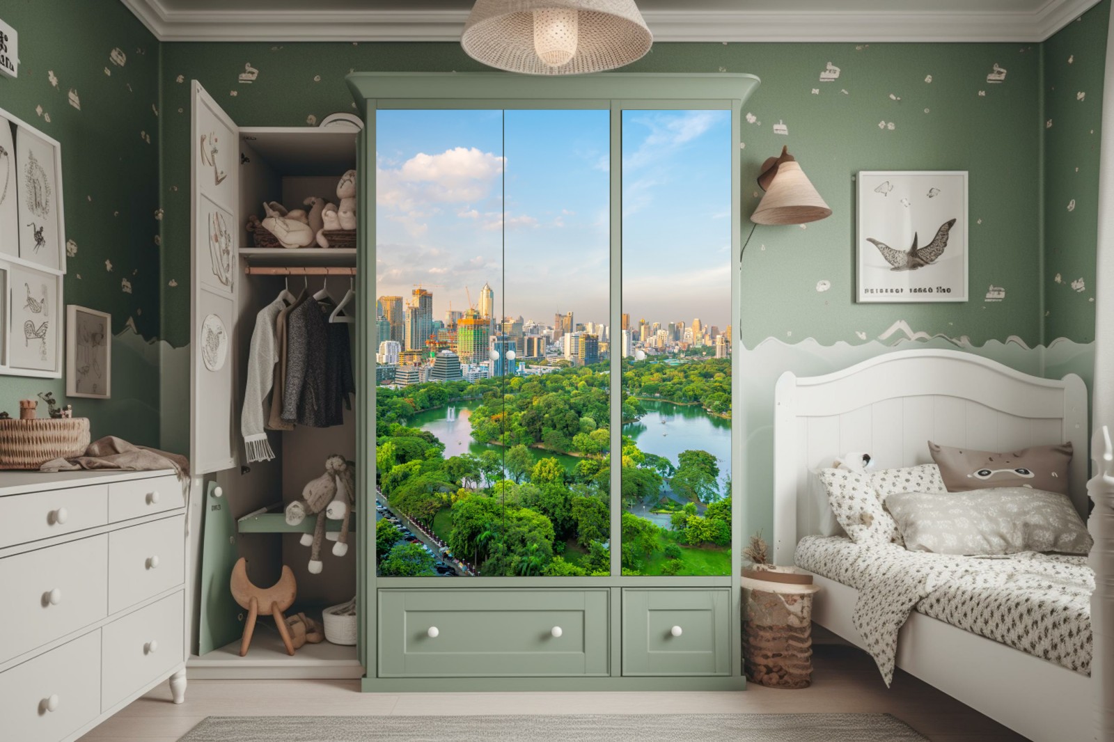 Lebendige Luftaufnahme von Bangkok und dem Lumpini Park bringt urbane Ruhe und üppiges Grün in moderne Wohnräume.