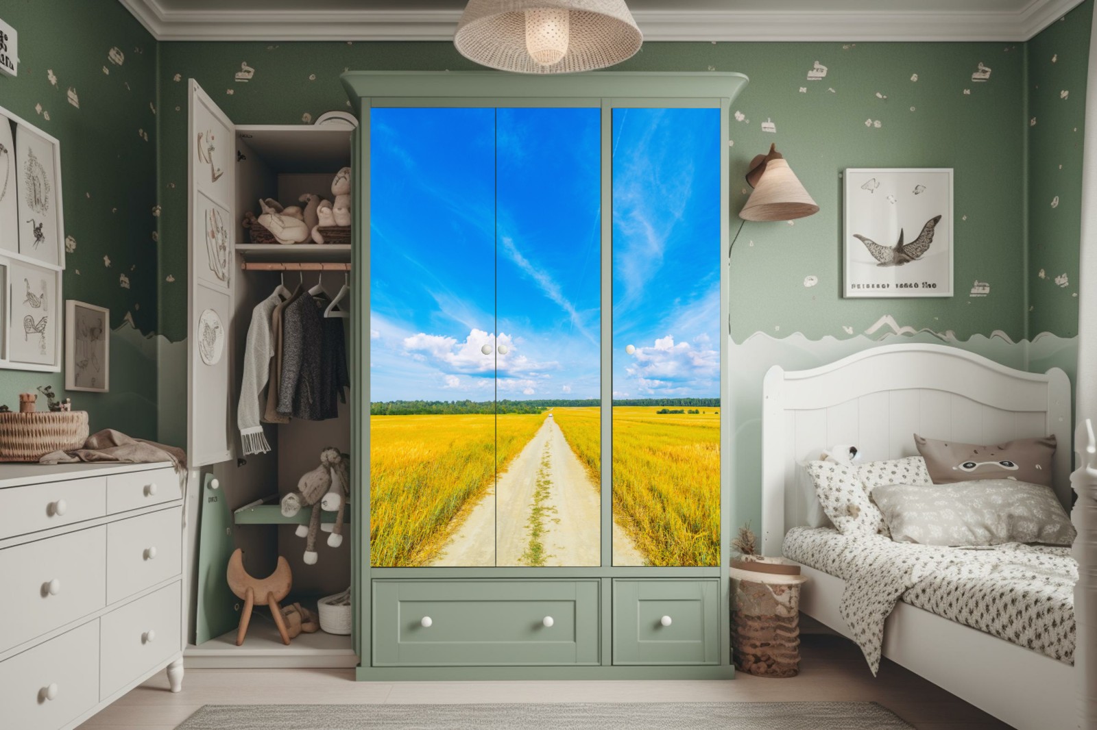 Schrankaufkleber goldene wiese unter weitem blauem himmel