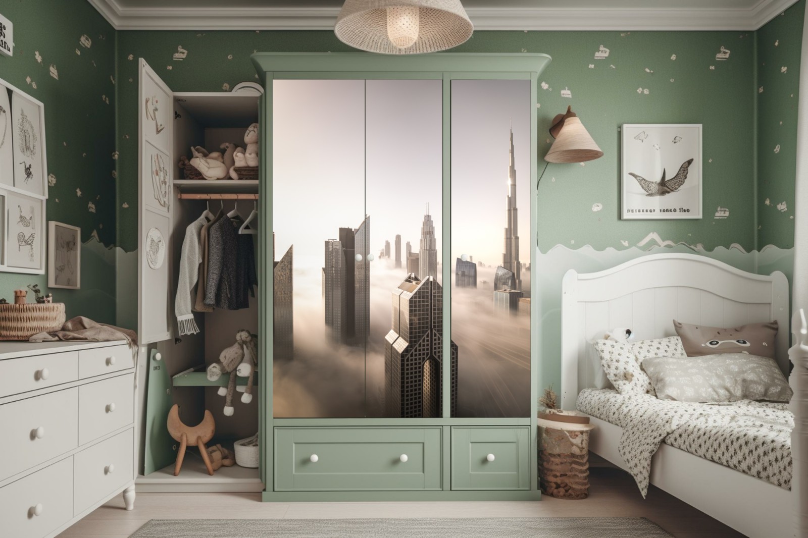 Schrankaufkleber neblige Dubai skyline über den wolken