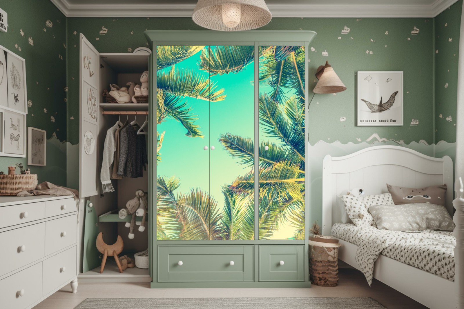 Schrankaufkleber vintage türkis palmenhimmel