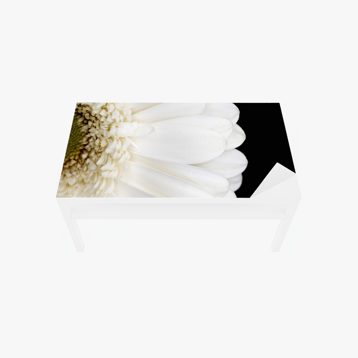 Tischaufkleber und Schreibtischaufkleber Weiße gerbera auf schwarzem hintergrund minimalistische nahaufnahme
