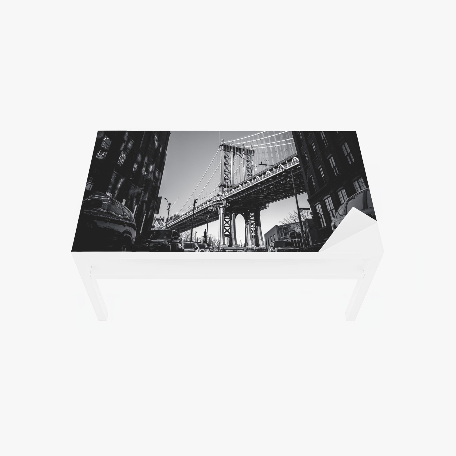 Tischaufkleber und Schreibtischaufkleber Manhattan brücke perspektive über kopfsteinpflaster