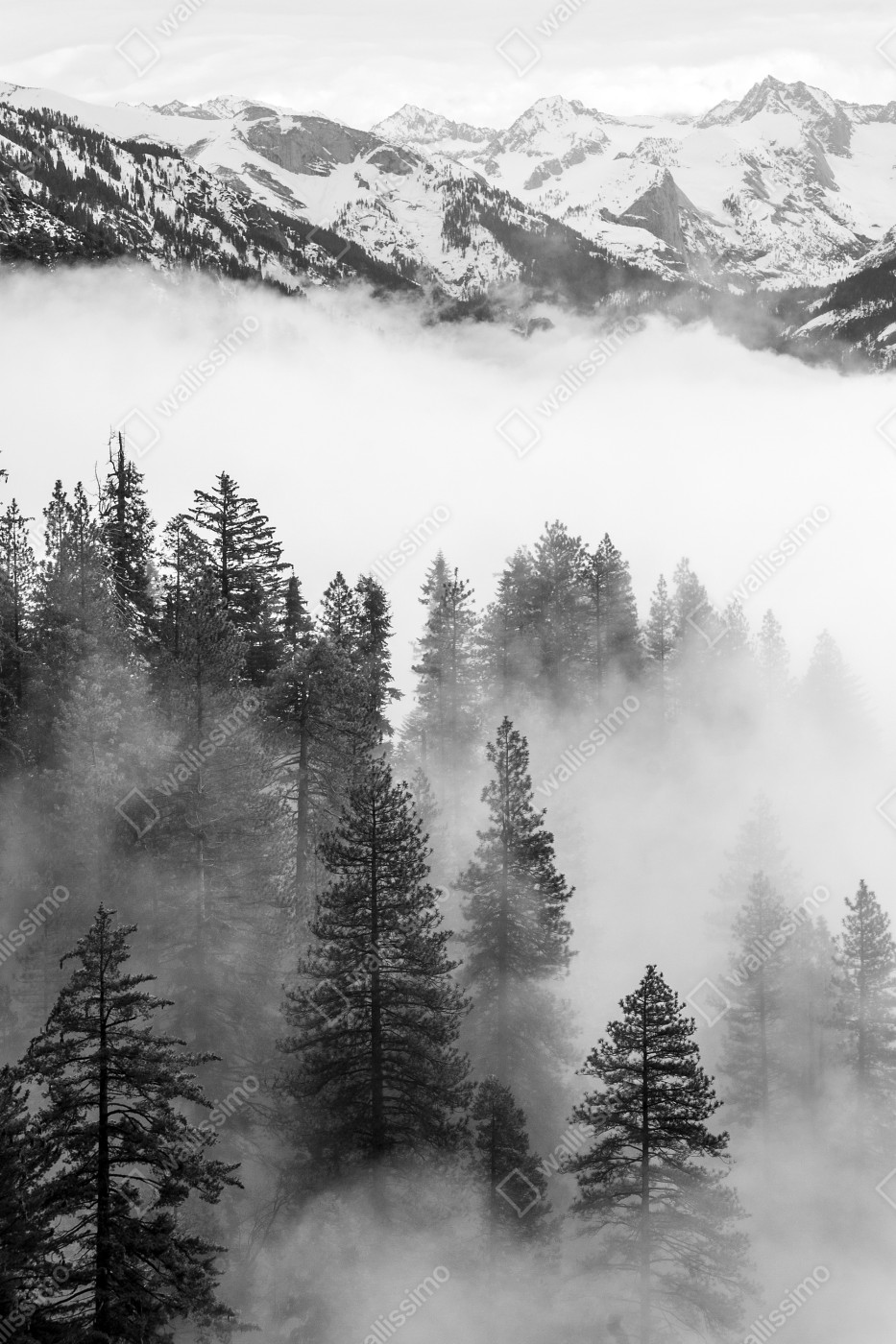 Tischaufkleber und Schreibtischaufkleber Nebliger Giant Forest, Sequoia National Park