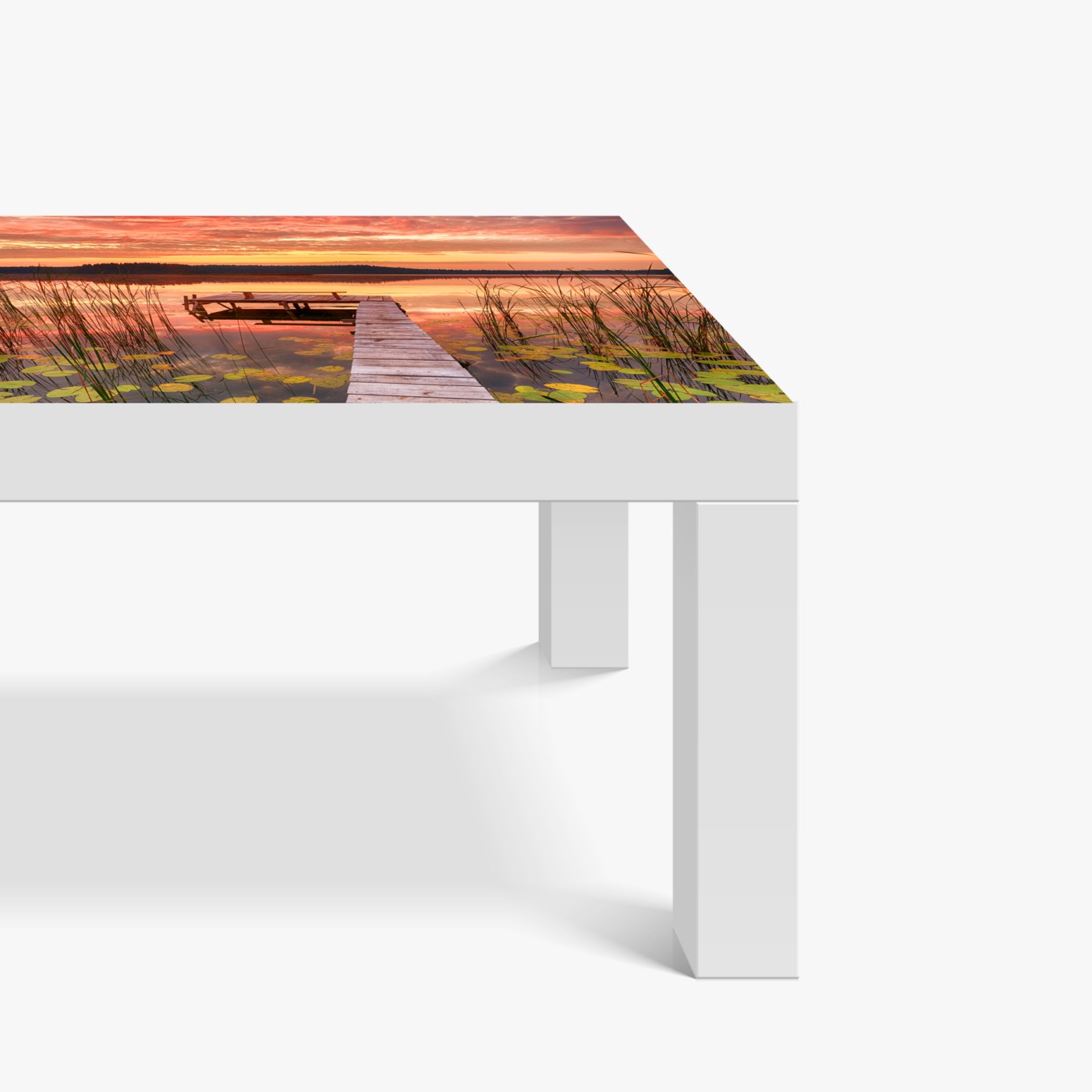 Tischaufkleber und Schreibtischaufkleber sonnenaufgang über ruhigem see mit steg