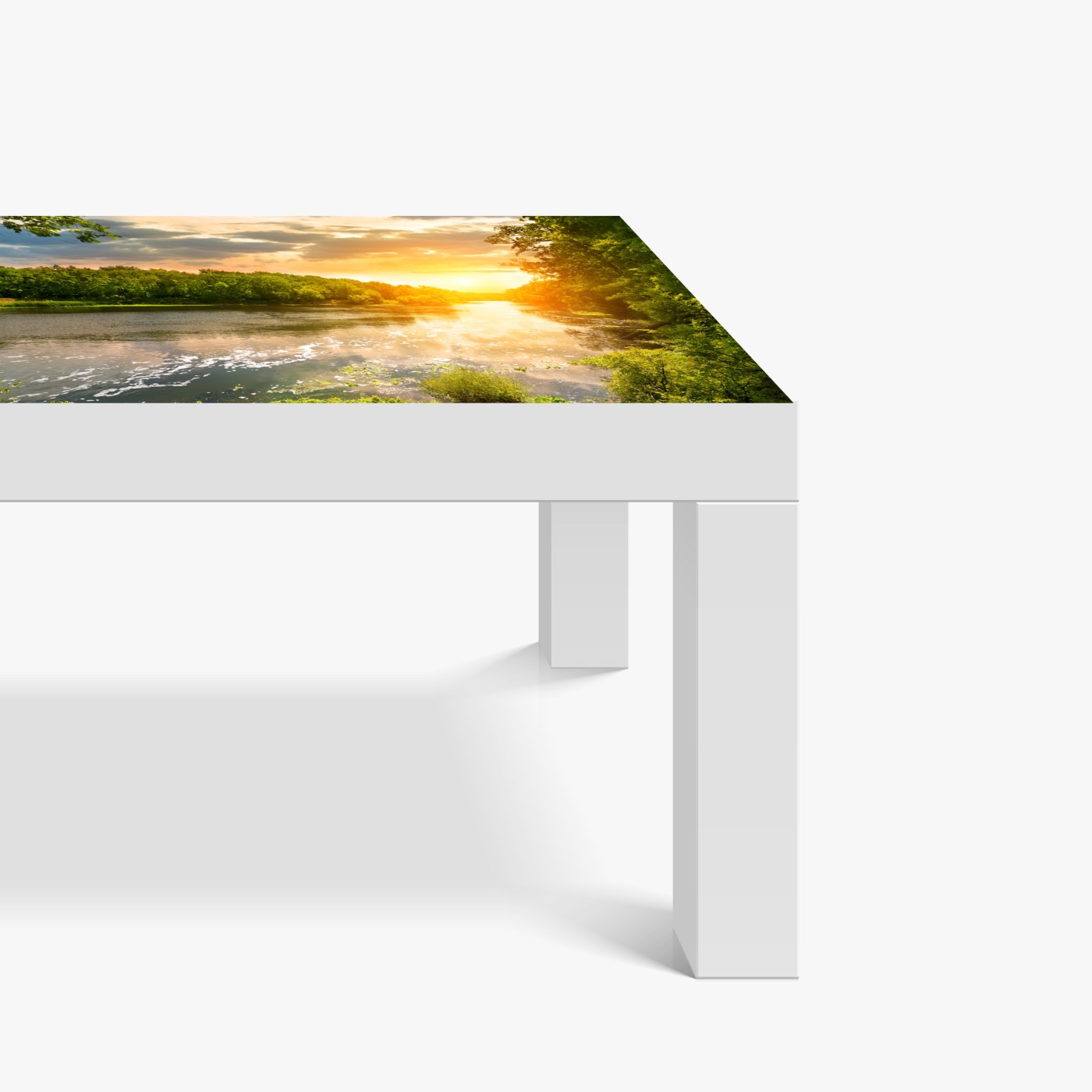 Tischaufkleber und Schreibtischaufkleber Ruhiger sonnenuntergang am fluss im grünen wald