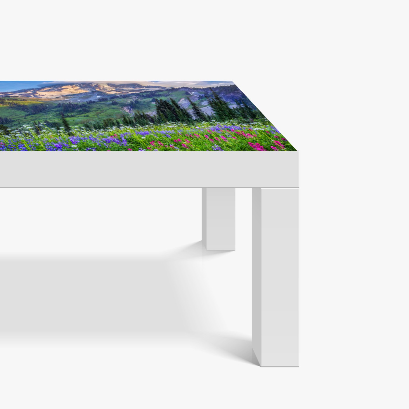Tischaufkleber und Schreibtischaufkleber Alpine blumenwiese vor schneebedeckten bergen