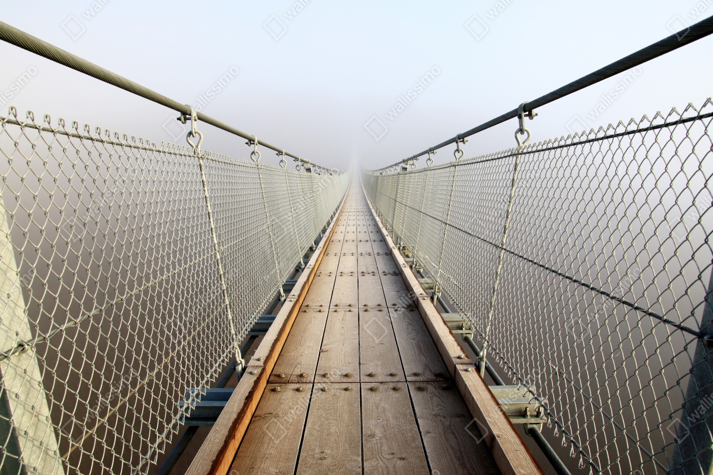 Tischaufkleber und Schreibtischaufkleber Neblige hängebrücke die in den nebel führt
