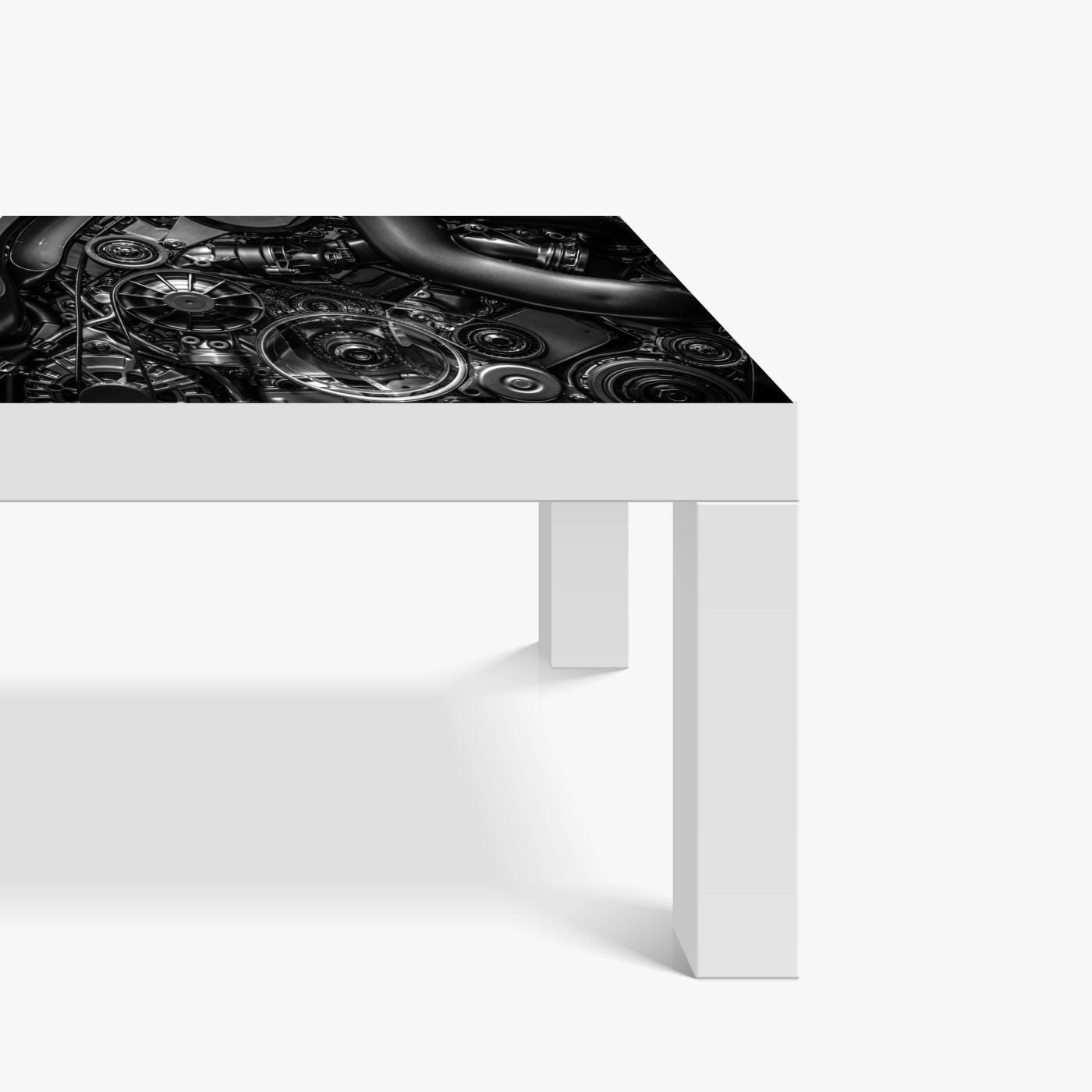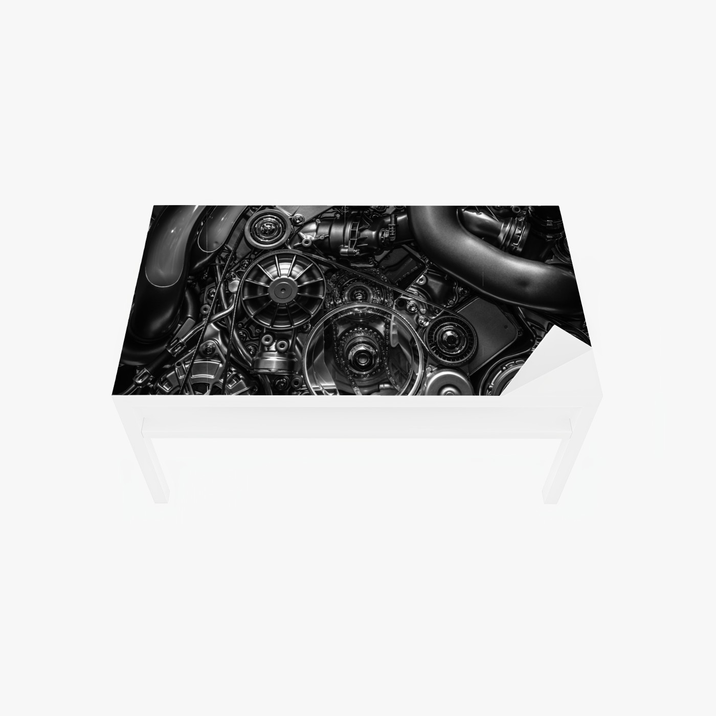 Tischaufkleber und Schreibtischaufkleber Präzise motor-nahaufnahme im industrial-stil