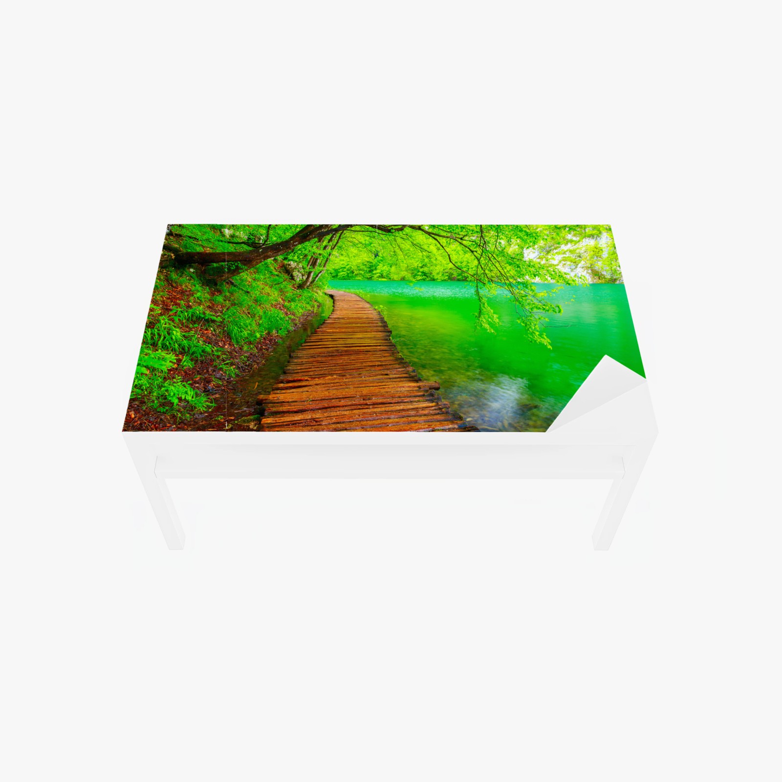 Tischaufkleber und Schreibtischaufkleber Ruhiger grüner steg am see