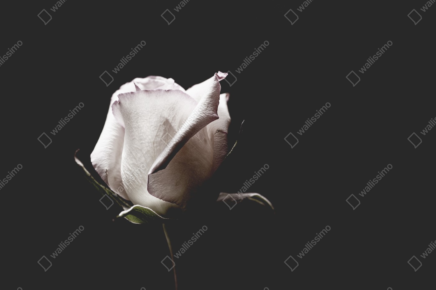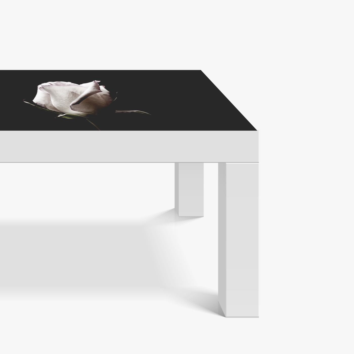 Tischaufkleber und Schreibtischaufkleber Weiße rose vor schwarzem hintergrund