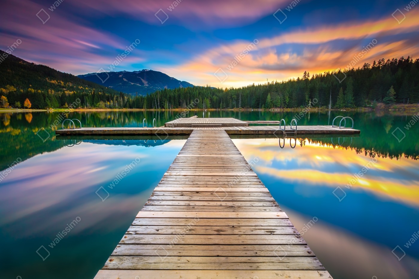 Tischaufkleber und Schreibtischaufkleber Ruhiger bergsee im sonnenuntergang