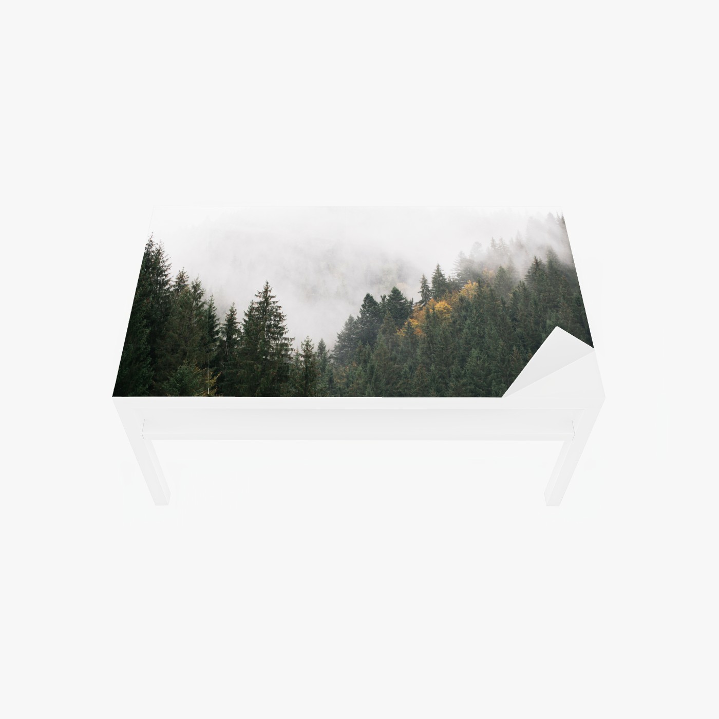 Tischaufkleber und Schreibtischaufkleber Nebliger bergwald im dunst