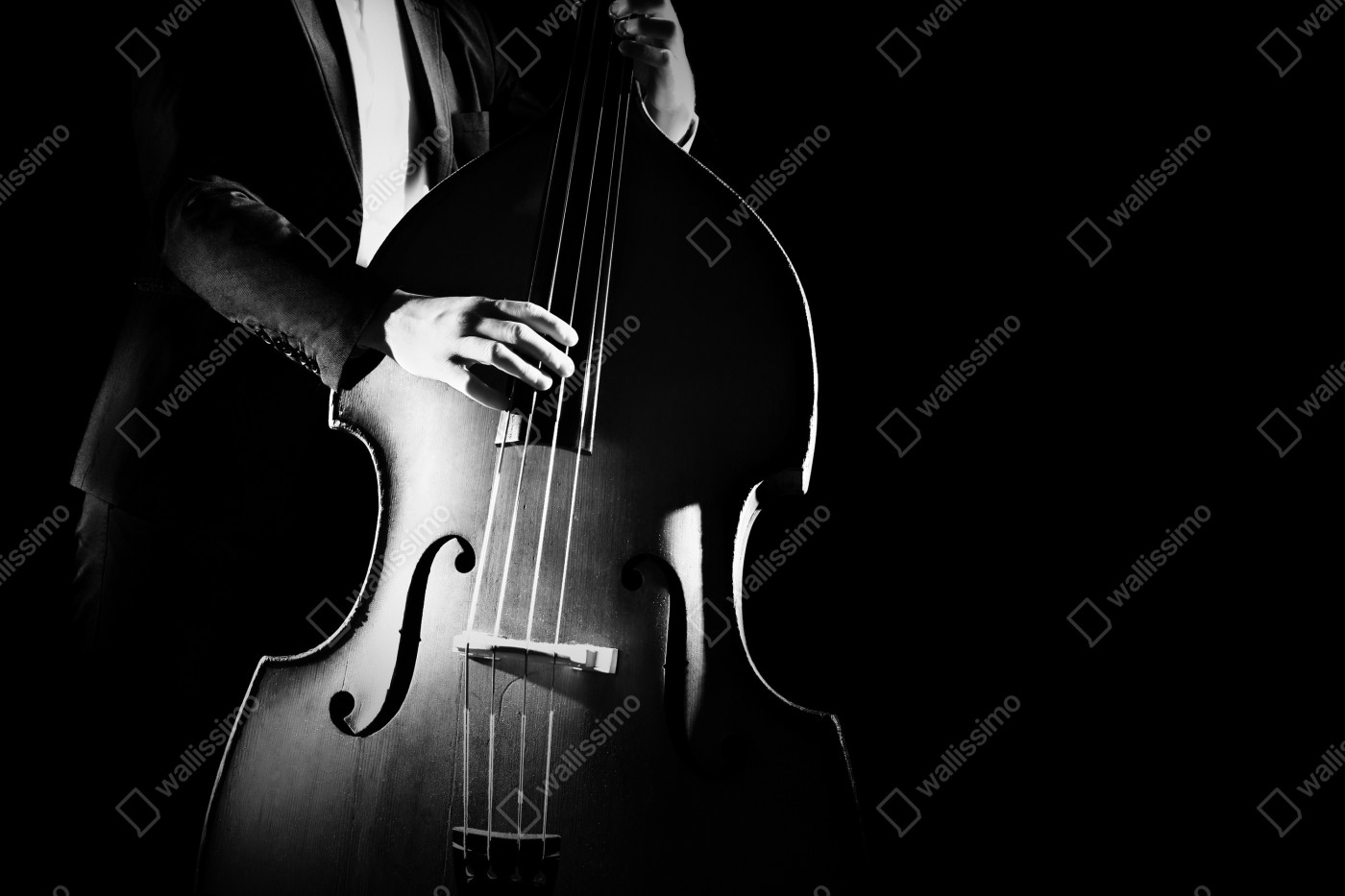 Tischaufkleber und Schreibtischaufkleber Kontrabassist im dramatischen licht