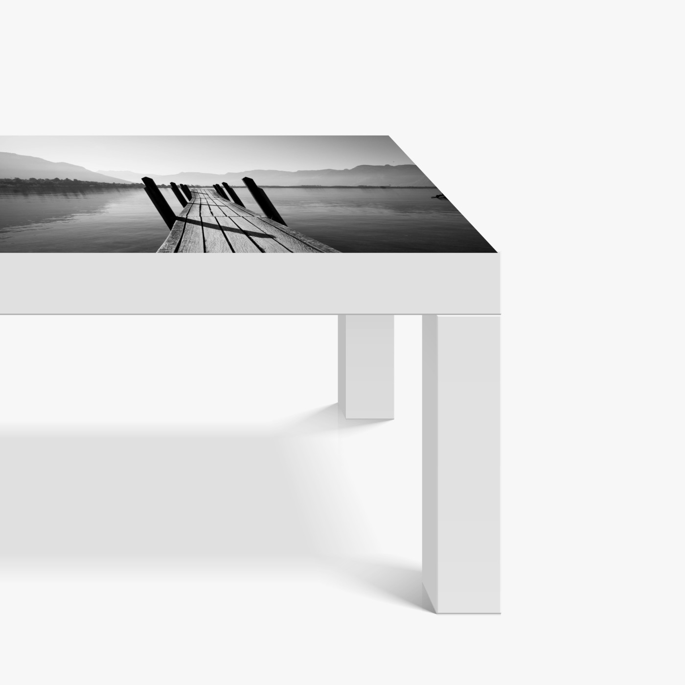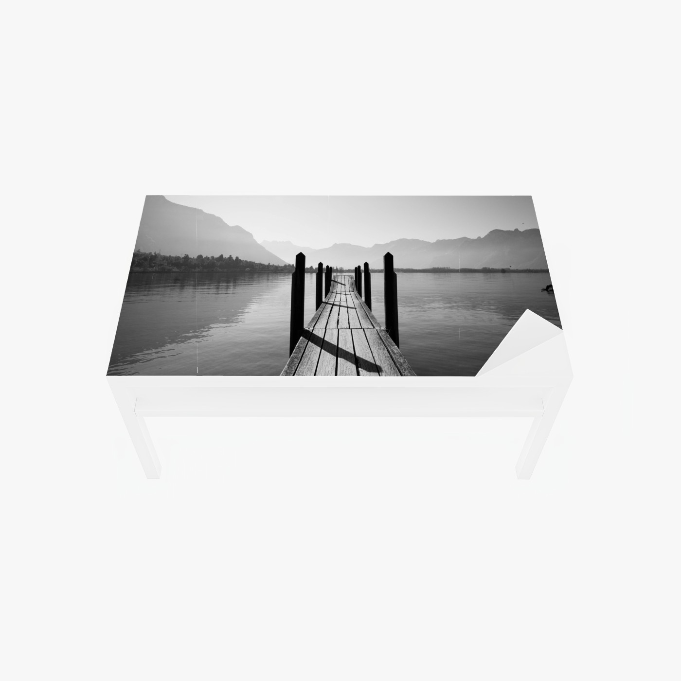 Tischaufkleber und Schreibtischaufkleber ruhiger steg am see in schwarzweiß