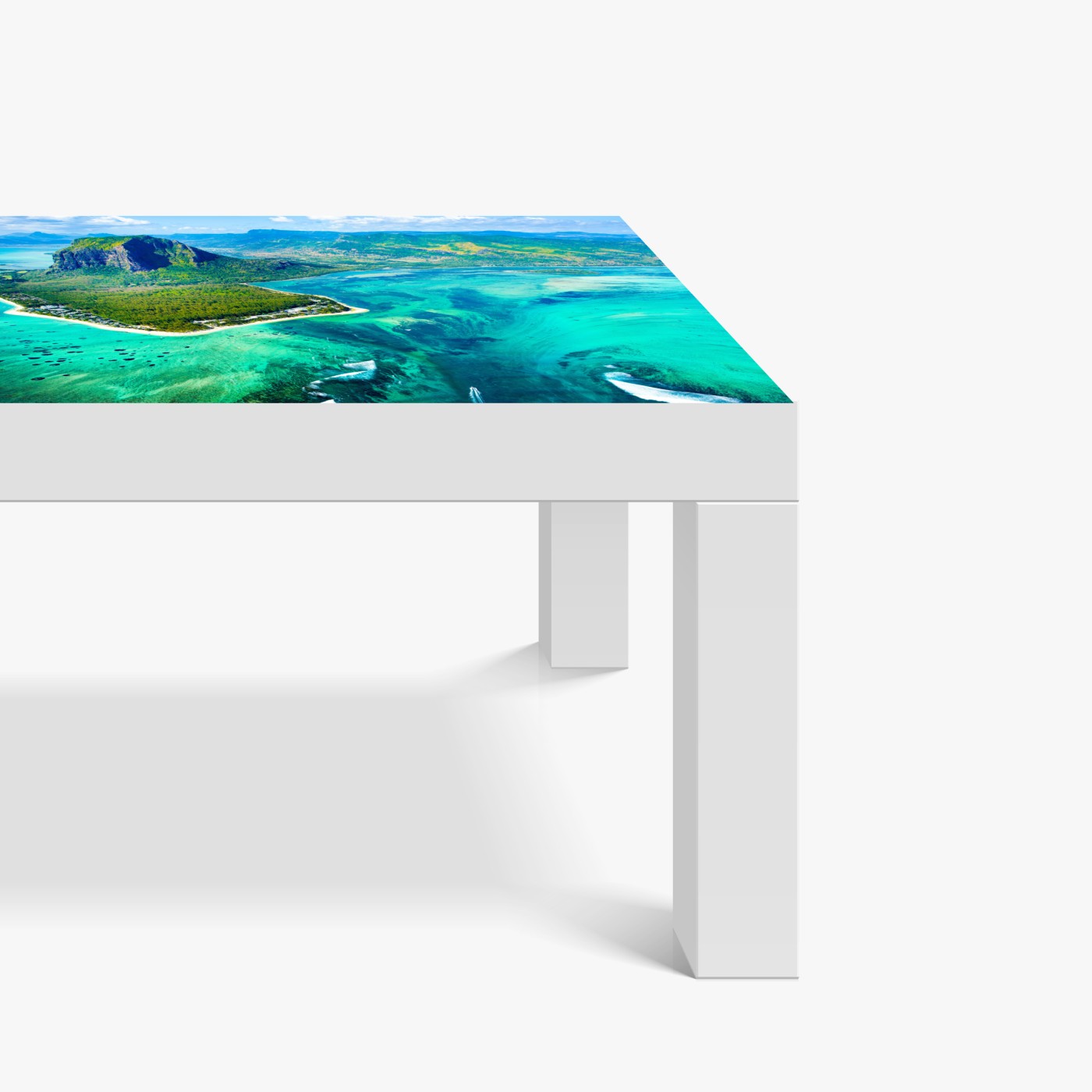 Tischaufkleber und Schreibtischaufkleber Türkisfarbene lagune aus der luft, Mauritius