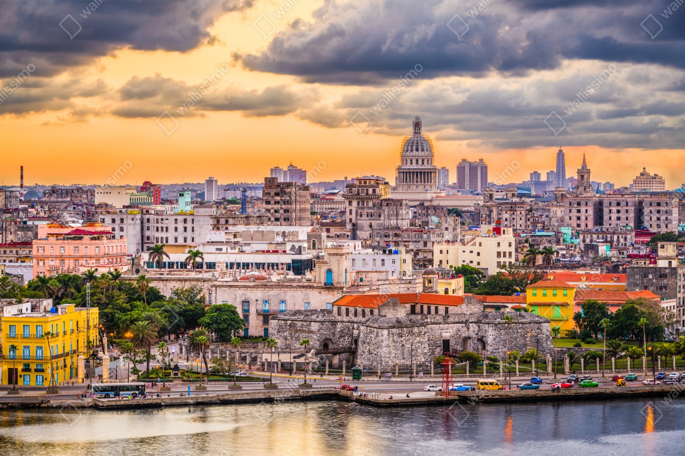 Tischaufkleber und Schreibtischaufkleber Havanna skyline bei sonnenuntergang