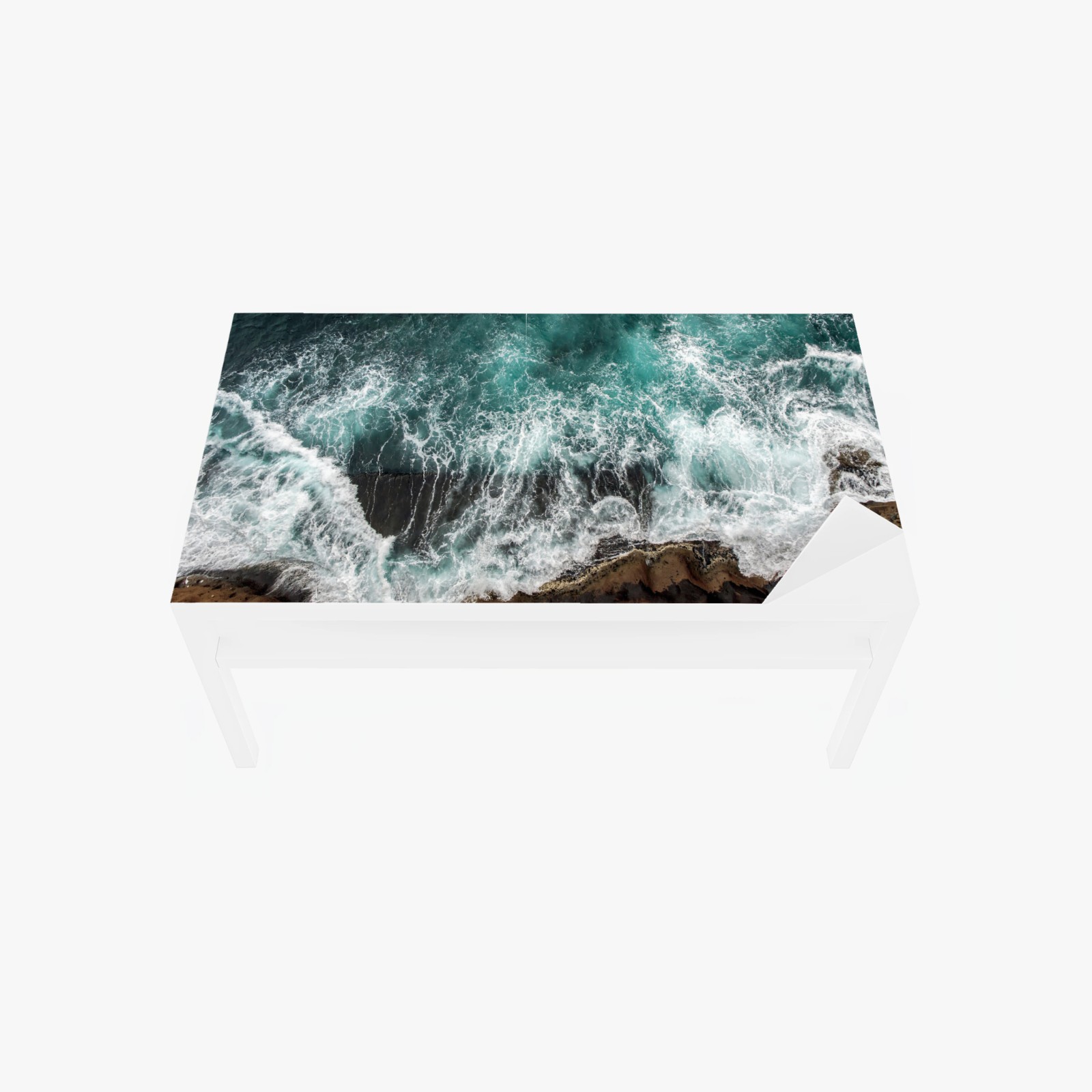 Tischaufkleber und Schreibtischaufkleber Türkise küste aus der vogelperspektive mit brandenden wellen