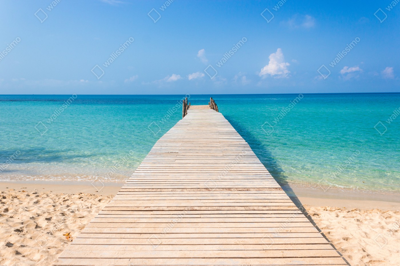 Tischaufkleber und Schreibtischaufkleber Hölzerner steg zum türkisfarbenen meer