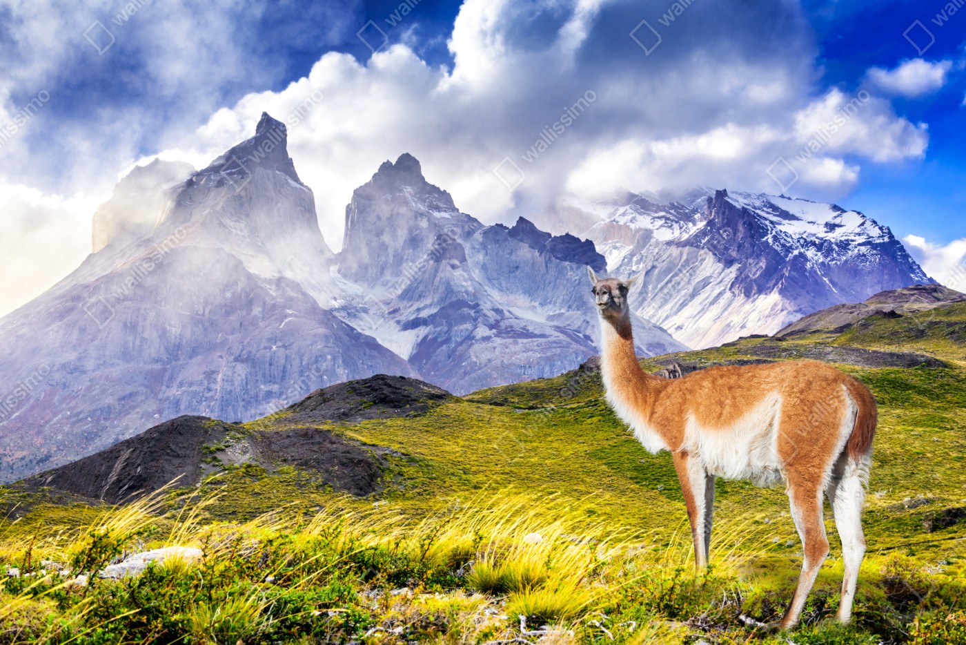 Tischaufkleber und Schreibtischaufkleber Torres del Paine Patagonia landschaft mit guanako
